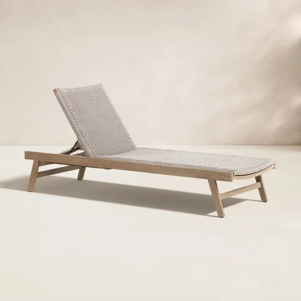 Isley is a modern outdoor chaise with a rounded solid teak heartwood frame. Inherently durable for the outdoors, this teak is sustainably sourced and infuses the beauty of solid wood into your space. Over time, teak naturally patinas to a beautiful silver color.