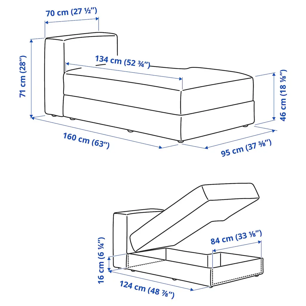 JÄTTEBO Chaise module, right - Tonerud gray. The modules in the comfortable JÄTTEBO series can be combined as you like, create a large or small sofa that suits you perfectly and add more parts when your needs change. You can add armrests to your sofa to give it a more embracing feel.