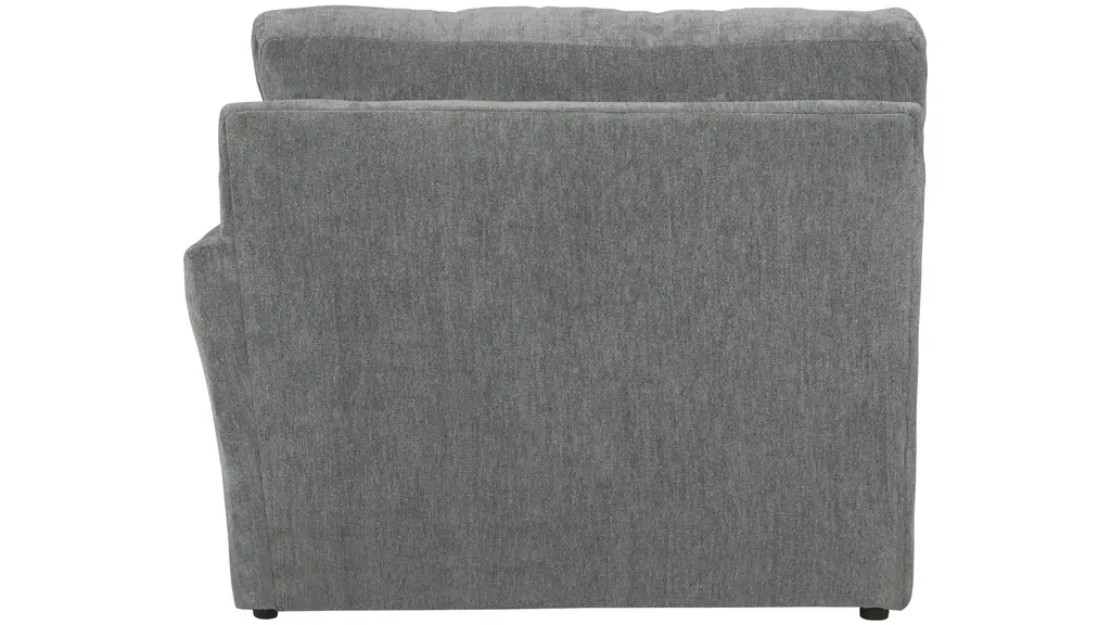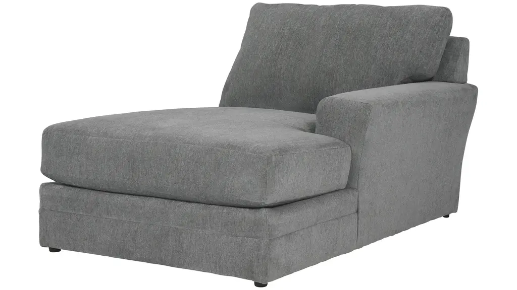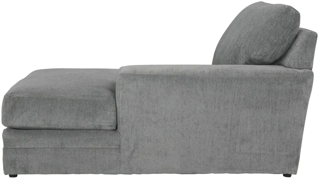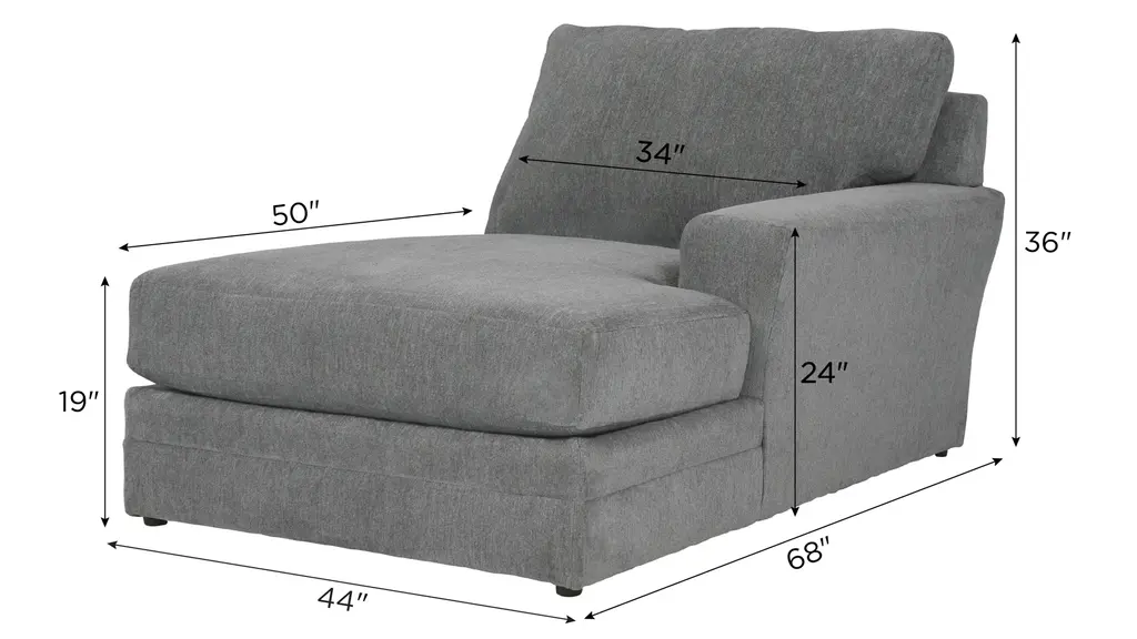 Gather, relax, and sink into comfort with the ultra-plush Kristoff sectional collection. Upholstered in a soft slate-gray fabric, the right arm facing chaise is just one of the components designed for modern lounging with deep seats, supportive cushions, and a wraparound silhouette that invites everyone in. A mix of textured and patterned throw pillows in shades of light gray and ice blue adds visual interest and cozy layers.