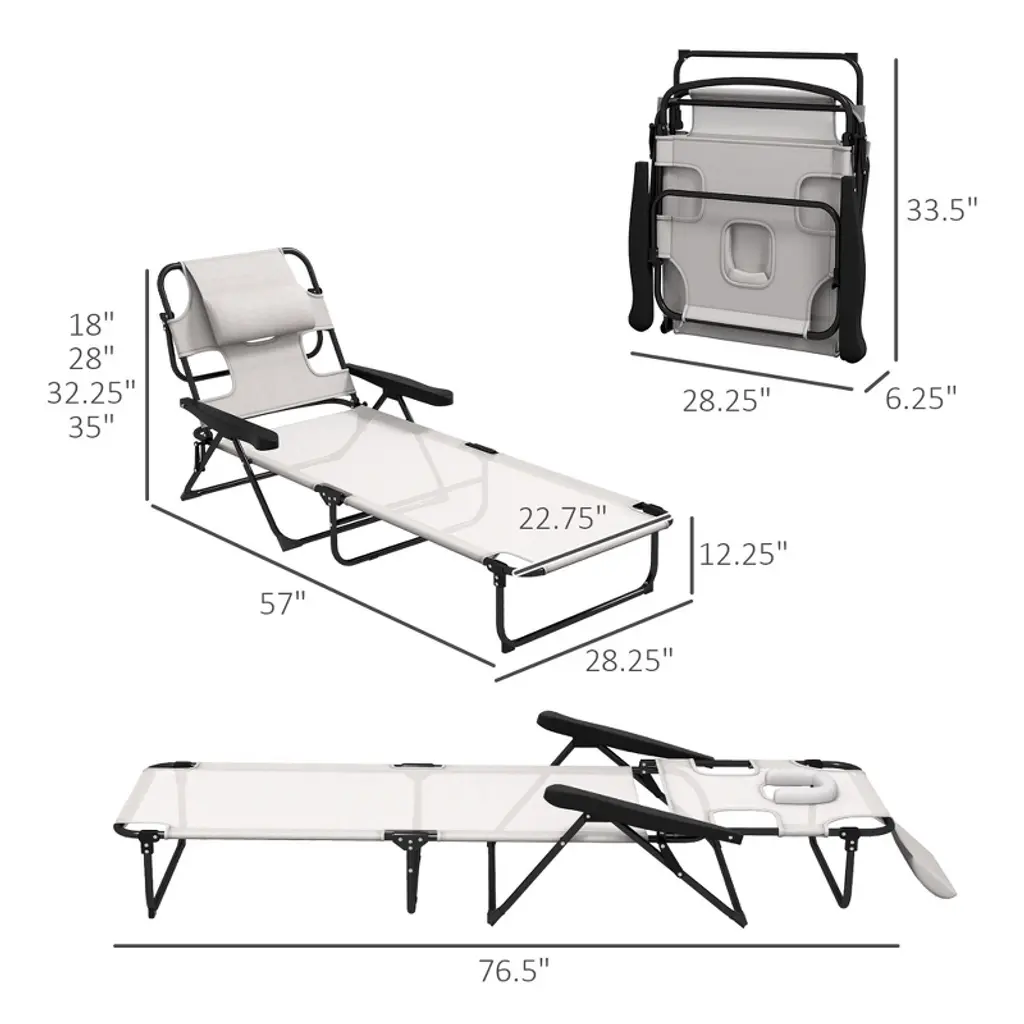 Kumasinova Tri-fold Outdoor Chaise Patio Lounge Camping Chair,4-position Reclining Tanning Chaise With Face Hole,adjustable Sunbathing Chair
