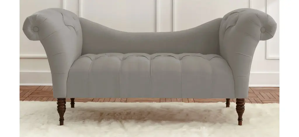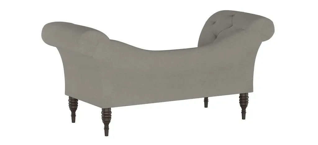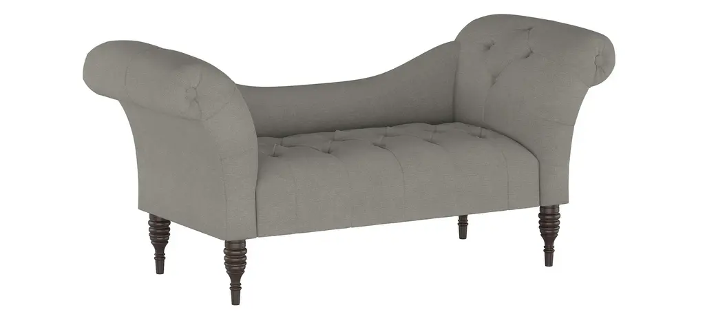 The Lansing chaise lounge prides itself in its old-style elegance, with a gently curved backrest and spectacularly flared roll-arm silhouette. Hand-finished diamond tufting adds plushness and timeless appeal. Upholstered in a fashionable fabric.