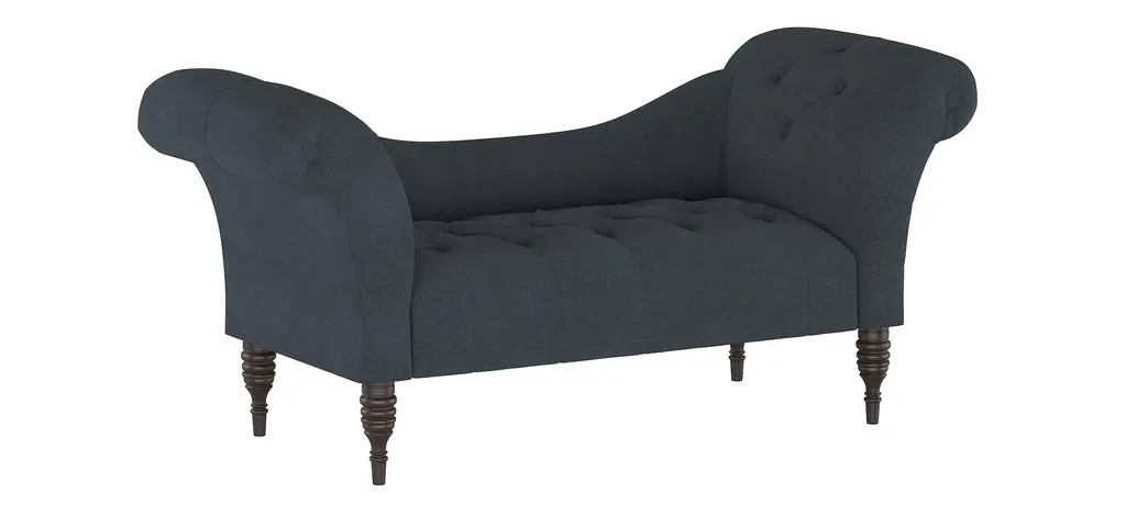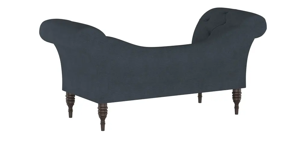 The Lansing chaise lounge prides itself in its old-style elegance, with a gently curved backrest and spectacularly flared roll-arm silhouette. Hand-finished diamond tufting adds plushness and timeless appeal. Upholstered in a fashionable fabric.