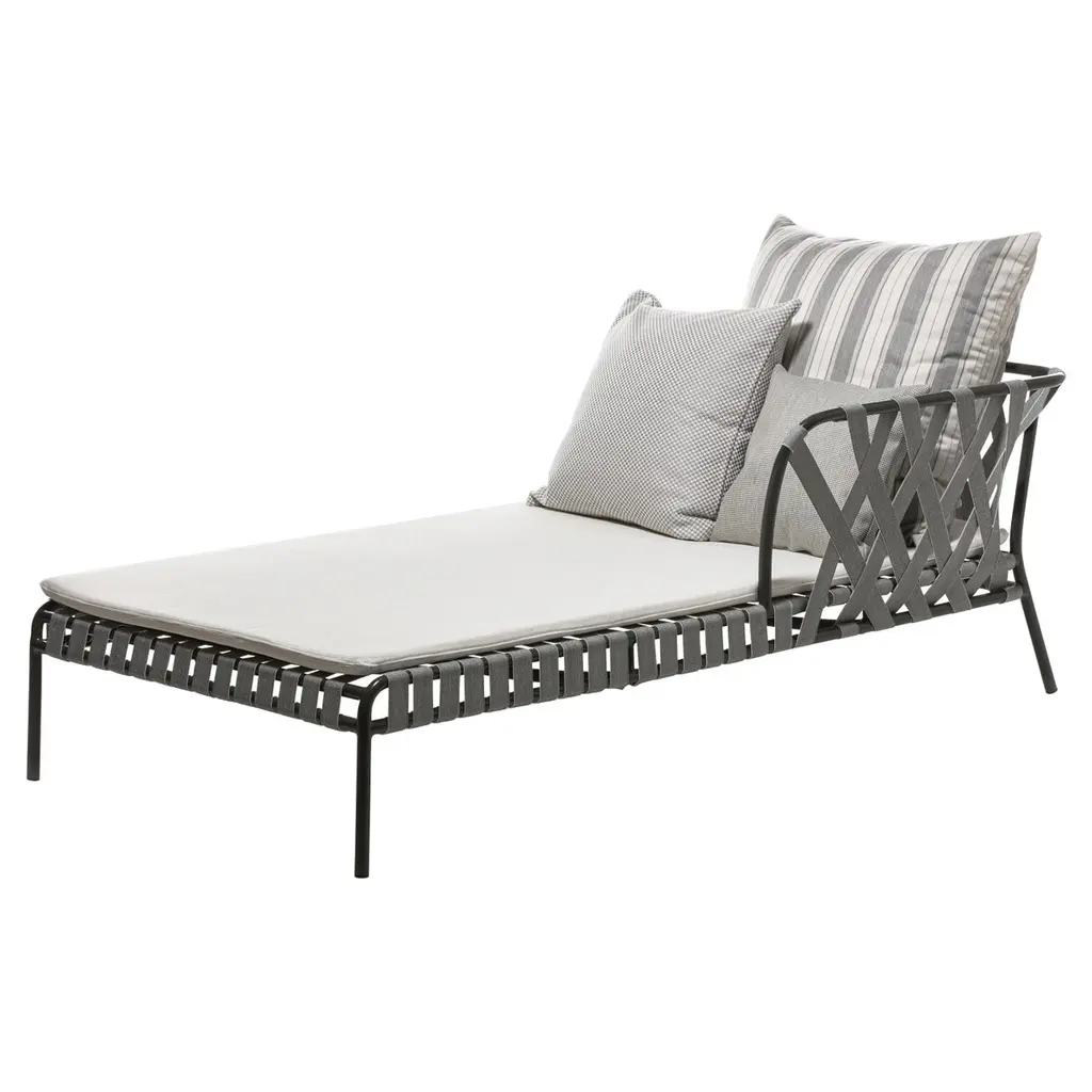 The Laurel collection was inspired by nature's green laurel leaf and its aromatic fragrance, which breathes life into your home. The design brings the poetry of nature to any living space. With elegant styling, the chaise lounge allows you to sit back into comfortable cushions for ultimate relaxation. Arms remove to offer a modern silhouette and to connect to other matching modular pieces. The Laurel collection also provides a rich and stylish look indoors and adds a glamorous lifestyle outdoors. The versatility of the modular design offers unlimited possibilities for creating the perfect custom space. All you have to do is join the pieces together with the clips provided and relax!