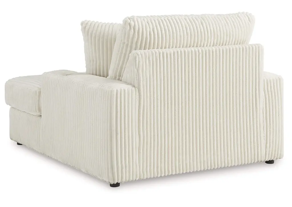 Plush and posh. Showcase your eye for on-trend texture with the statement-making cord upholstery of the Lindyn chaise. Its stunningly soft fabric entices in an ivory hue, complementing contemporary color palettes. Sink into the cushions and plan to stay a while—this cozy oversized chaise highlights your high-end approach to comfort and style. Weight 141.000 lbs. (63.45kgs.)