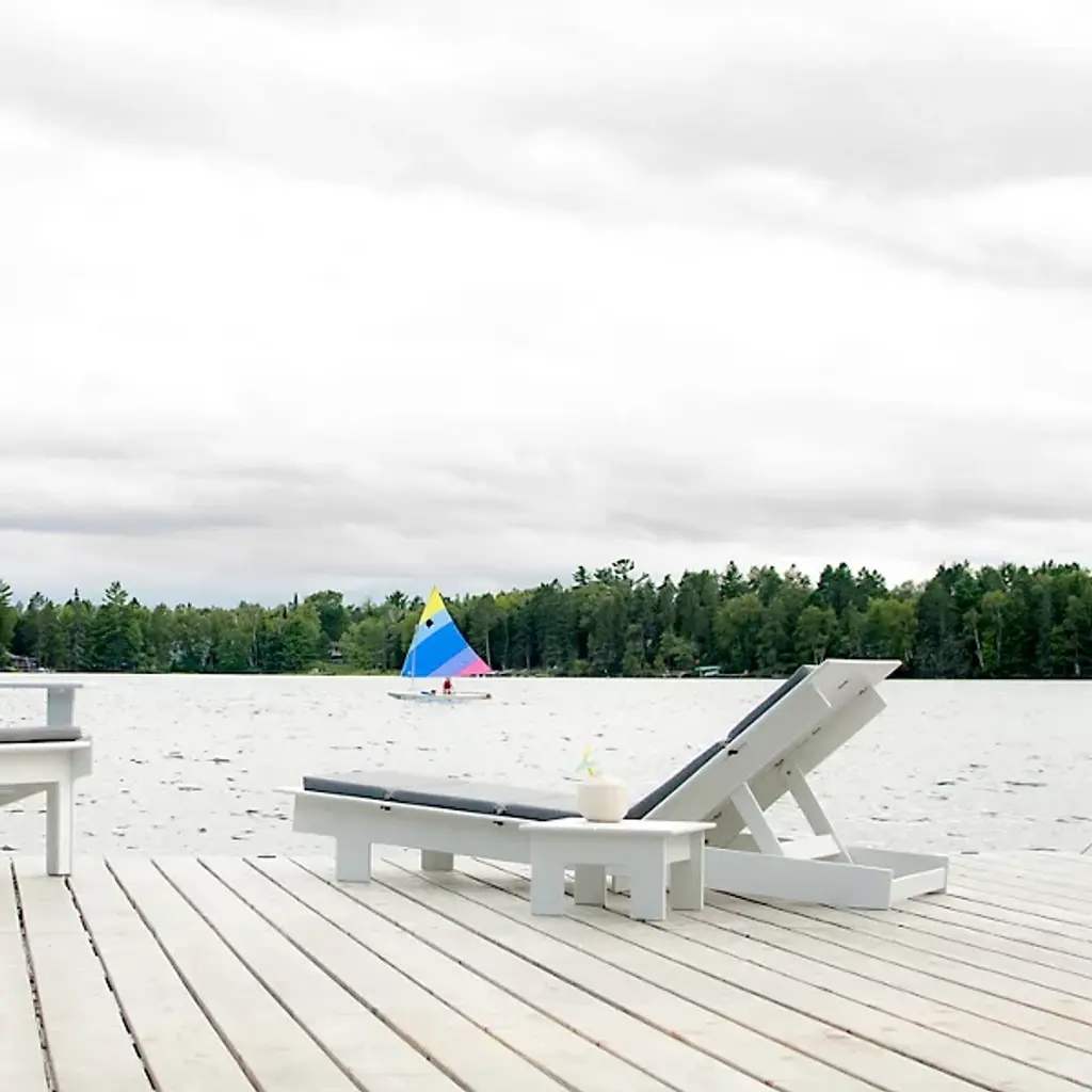 Lounge in style with the Lollygagger Outdoor Chaise with Cushions, Set of 2 from Loll Designs, part of their eco-friendly Lollygagger Collection. This set of 2 contemporary chaise loungers, made in the USA from recycled HDPE (primarily from milk jugs), is lightweight yet durable, making it easy to reposition for optimal sunbathing. The adjustable backrest offers six reclining angles, ensuring the perfect spot for lounging or napping. Cushions made with Sunbrella acrylic are coated with a non-PFOA stain repellent for strength and lasting comfort, while 1% of sales are donated to charity, making relaxation guilt-free.