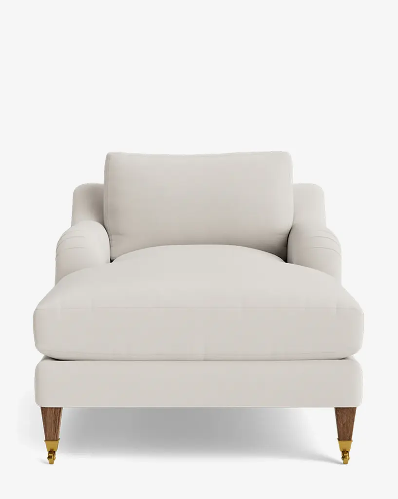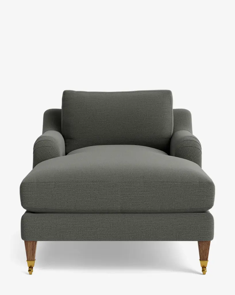 Our Lucille English Roll Arm Chaise Lounge is a modern approach to a traditional design. Crafted with luxurious comfort in mind, its classic format features a down wrapped cushion for a perfectly stuffed look and feel. A bench-made alder wood frame adds durability to the design, as four oak wood tapered legs give this chaise the ability to move around with ease. Completely customizable in a wide array of fabrics, make the chaise your own with either a soft linen, or high performance crypton.