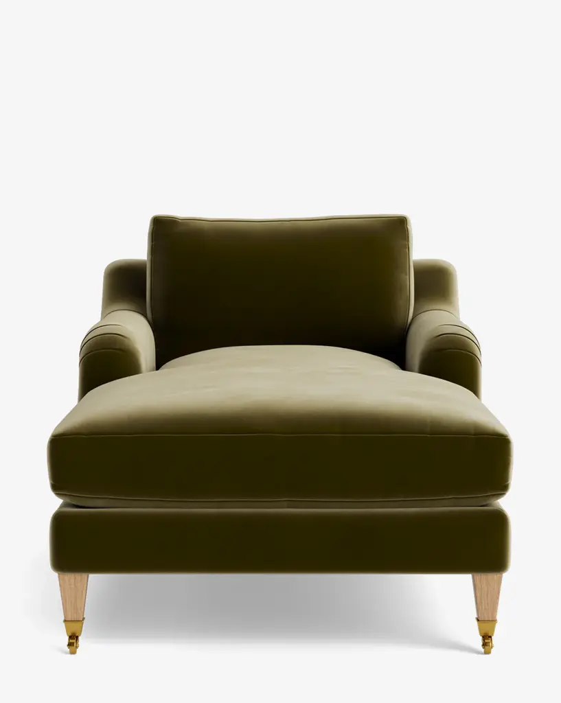 Our Lucille English Roll Arm Chaise Lounge is a modern approach to a traditional design. Crafted with luxurious comfort in mind, its classic format features a down wrapped cushion for a perfectly stuffed look and feel. A bench-made alder wood frame adds durability to the design, as four oak wood tapered legs give this chaise the ability to move around with ease. Completely customizable in a wide array of fabrics, make the chaise your own with either a soft linen, or high performance crypton.