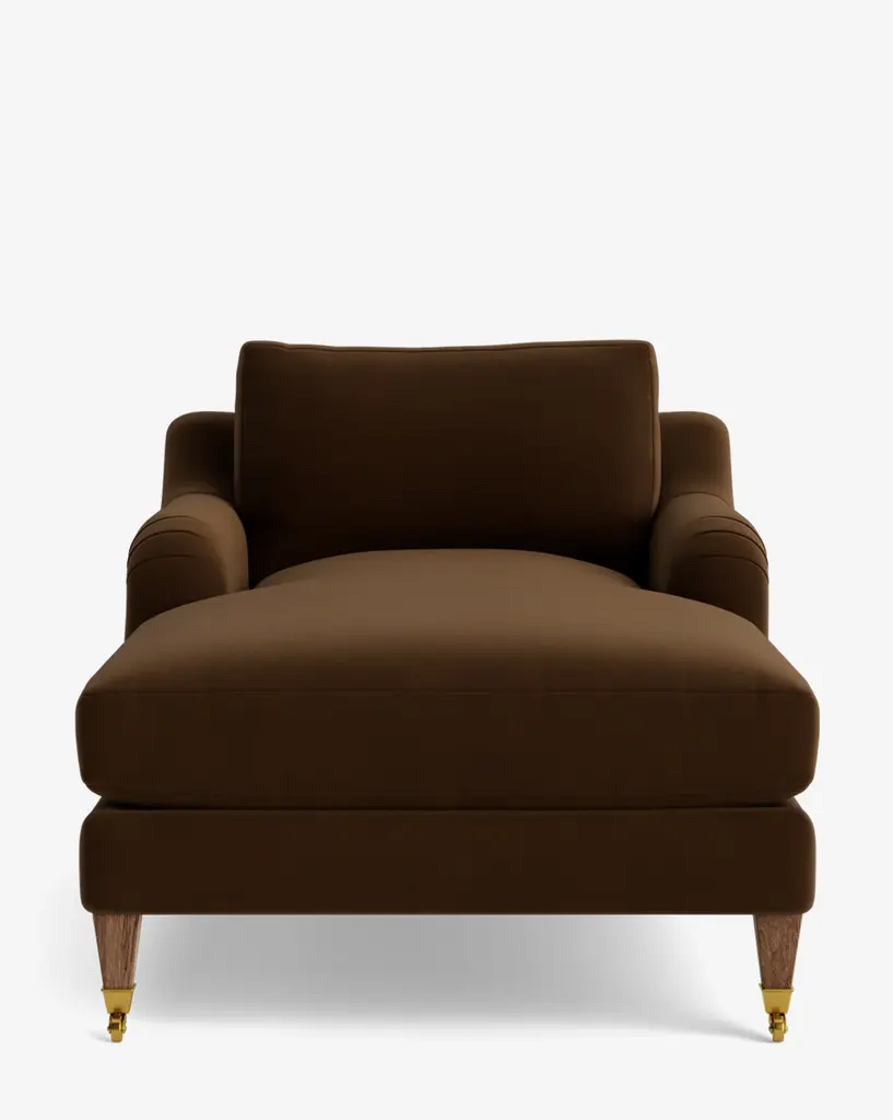 Our Lucille English Roll Arm Chaise Lounge is a modern approach to a traditional design. Crafted with luxurious comfort in mind, its classic format features a down wrapped cushion for a perfectly stuffed look and feel. A bench-made alder wood frame adds durability to the design, as four oak wood tapered legs give this chaise the ability to move around with ease. Completely customizable in a wide array of fabrics, make the chaise your own with either a soft linen, or high performance crypton.
