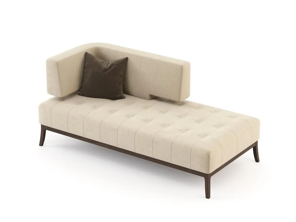 The Passione collection reflects the feminine elegance of the rounded forms of its pieces. Each design piece is essential to complete the space in a framework of perfect sophistication.Upholstered in beige velvet and with walnut wood base, the Passione chaise longue combines comfort and timeless design. A luxurious piece in neutral tones that combines with different styles. The ideal decorative element to fill your bedroom or living room with elegance. The nobility of the walnut wood as the base of this chaise longue translates the dedication and commitment we put in each piece, so that it is everything you dreamed of. Comfort and elegance are everything you will find in this chaise longue. The softness of the velvet brings versatility to any environment where you wish to place this piece. Ideal for minimalist and modern environments.Lacquered metal or other metals - Price on requestClass 1 Fabrics include synthetic leather;Natural leather finishing (Class 2) - Price on requestAs the product can be personalised, the image of the presentation is merely illustrative.