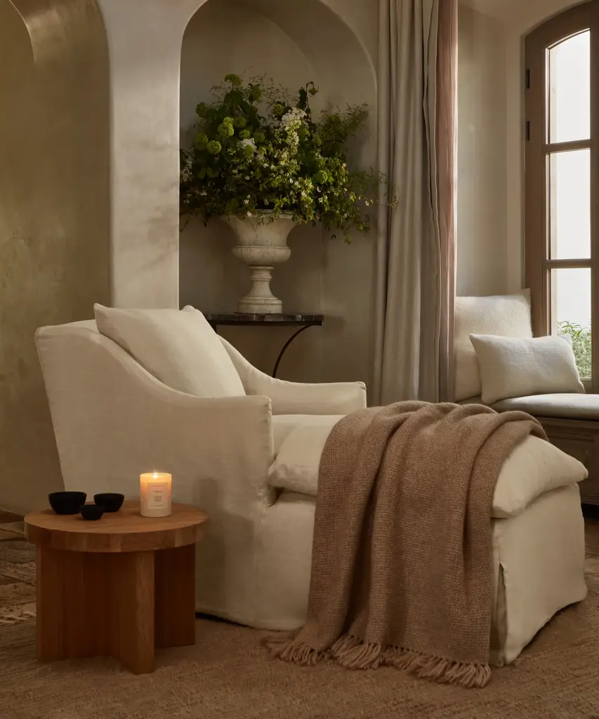 Miramar Chaise Pearl Linen Elegant chaise crafted from luxurious Belgian Libeco linen: 100% linen slipcover. Features feather down fill and foam core. Handmade in the USA, the Miramar Chaise is made for lounging in luxury. For furniture purchases, please refer to our furniture inspection policy here, and for help styling this piece in your space, contact [email protected] for a complimentary consultatio CA Residents: Prop 65 Information