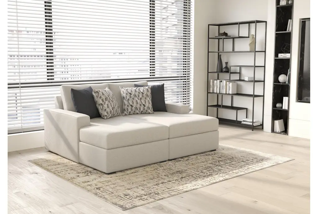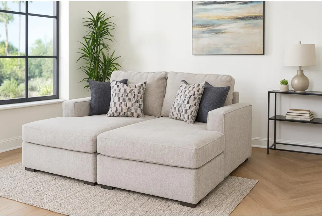 Experience ultimate comfort and style with the Monterey Beach Beige Grey Fabric 76" Double Chaise Lounge. Its contemporary design and neutral color make it a perfect addition to any living room. The double chaise feature provides ample space for relaxation and lounging.