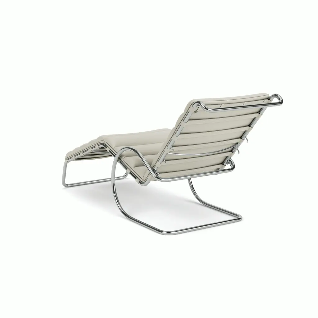 With a canted back and cantilevered bounce, the MR Adjustable Chaise Lounge invites relaxation. Its channel-tufted seat waterfalls down the tubular steel frame, offering supportive comfort in a statement-making form.Influenced by fellow Bauhaus master Marcel Breuer, Ludwig Mies van der Rohe quickly recognized the merits of tubular steel. Pairing the modern material with the classic form of nineteenth-century iron rocking chairs, he created the MR Adjustable Chaise Lounge in 1927. With its graceful curves and cantilevered structure, the chaise takes a striking form that flexes to comfortably support the movements of the sitter. In 1948, Mies granted Knoll exclusive rights to produce his furniture, including the MR Series.