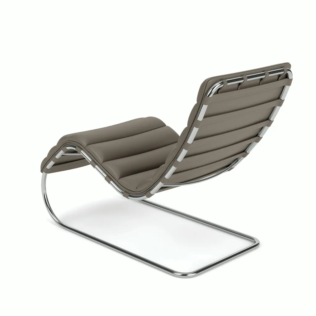 Curvaceous and cantilevered, the MR Chaise Lounge is shaped to fit the human form. It holds the sitter aloft and creates a feeling of floating in space. Furthering its sinuous stimulation on the senses, the MR Chaise bounces ever so slightly.Influenced by fellow Bauhaus master Marcel Breuer, Ludwig Mies van der Rohe quickly recognized the merits of tubular steel. Pairing the modern material with the classic form of nineteenth-century iron rocking chairs, he created the MR Chaise Lounge in 1927. With its graceful curves and cantilevered structure, the chaise takes a striking form that flexes to comfortably support the movements of the sitter. In 1948, Mies granted Knoll exclusive rights to produce his furniture, including the MR Series.