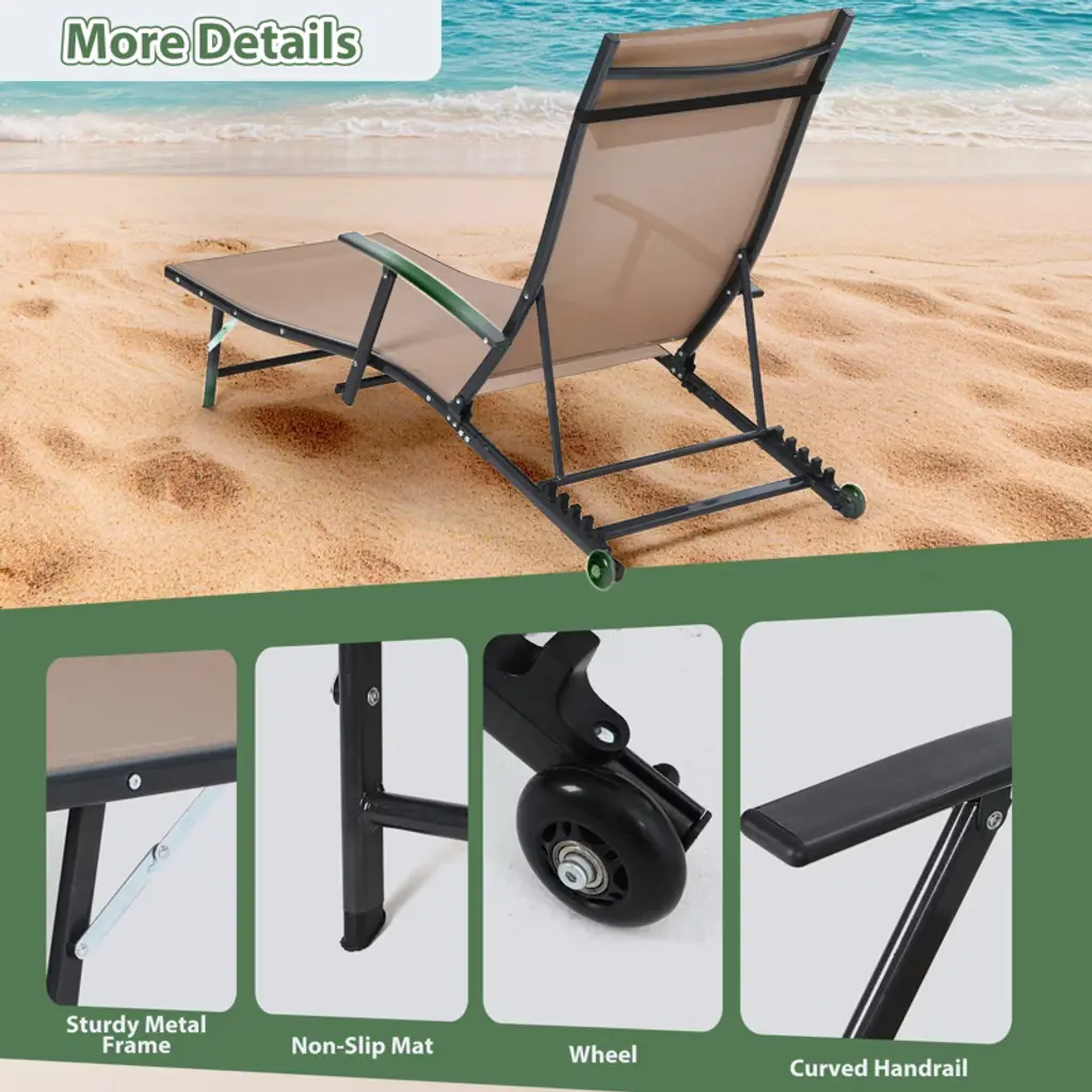 Muke Adjustable Patio Chaise Lounge Chair With Rear Wheel, 5-position Recliner For Pool, Beach & Garden (Beige, 1 Piece)