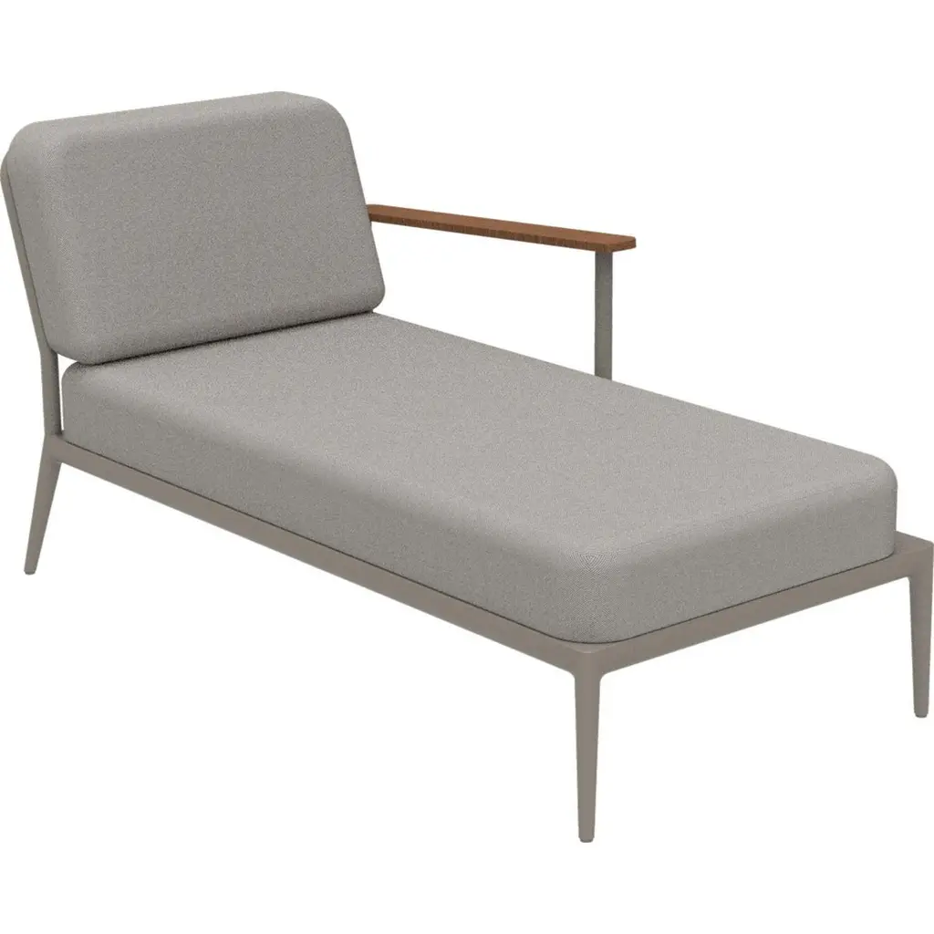 Nature Cream Left Chaise Longue by MOWEEDimensions: D155 x W76 x H81 cm (seat height 42 cm).Material: Aluminum, upholstery and Iroko Wood.Weight: 28 kg.Also available in different colors and finishes. Please contact us.An unmistakable collection for its beauty and robustness. A tribute to the Valencian manufacturing tradition as a challenge to innovation, making it sustainable and durable. A fresher version, Nature. It presents touches of natural and sustainable wood, which gives warmth and comfort, and makes it a unique collection.Möwee is part of the work, effort and commitment of Gaviota, a leading company in the outdoor sector. It was set up as an independent venture to broaden horizons in the outdoor furniture world, with its own distinctive character and way of doing things. Freshness, simplicity, quality and design are at the heart of its DNA.