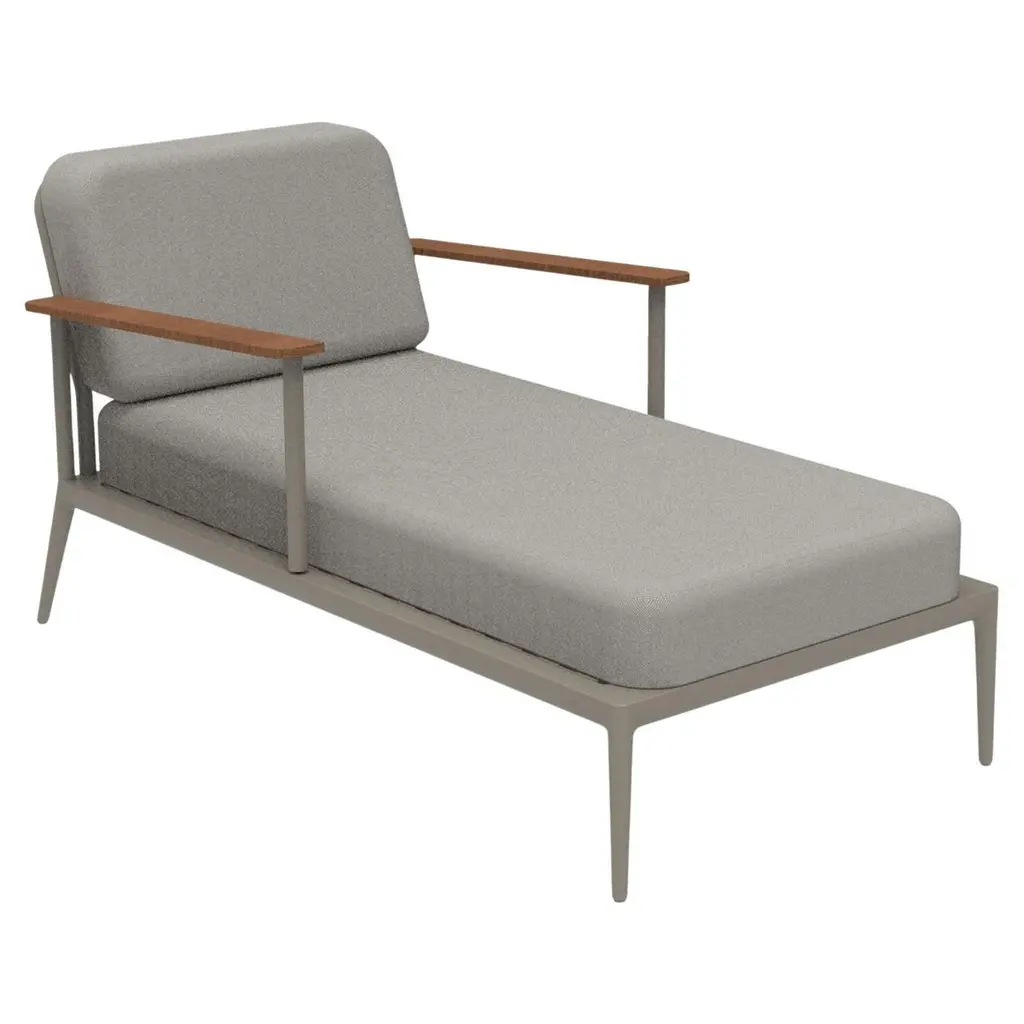 Nature White Left Chaise longue by MOWEEDimensions: D155 x W76 x H81 cm (seat height 42 cm).Material: Aluminum, upholstery and Iroko Wood.Weight: 28 kg.Also available in different colors and finishes. An unmistakable collection for its beauty and robustness. A tribute to the Valencian manufacturing tradition as a challenge to innovation, making it sustainable and durable. A fresher version, Nature. It presents touches of natural and sustainable wood, which gives warmth and comfort, and makes it a unique collection.Möwee is part of the work, effort and commitment of Gaviota, a leading company in the outdoor sector. It was set up as an independent venture to broaden horizons in the outdoor furniture world, with its own distinctive character and way of doing things. Freshness, simplicity, quality and design are at the heart of its DNA.