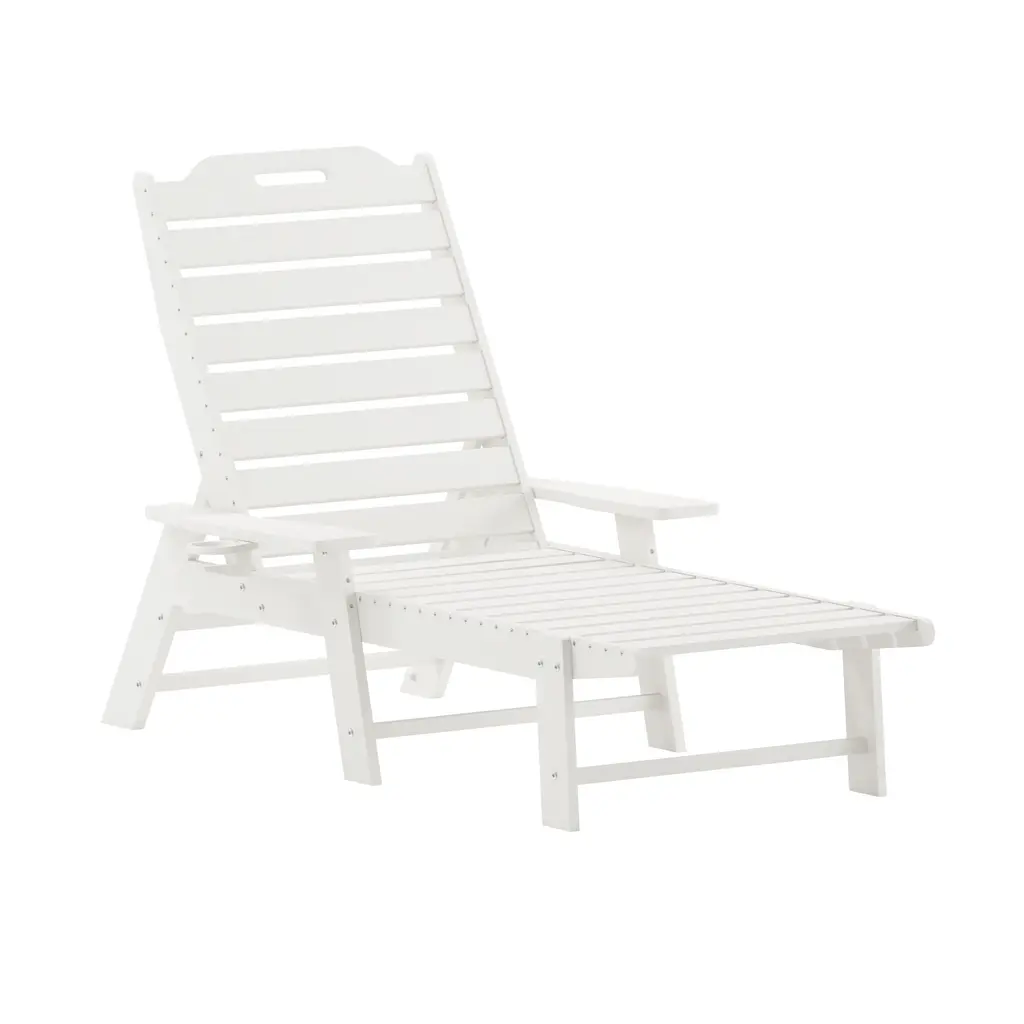 This patio chaise offers a blend of comfort and practicality, perfect for lounging by the pool or on your deck. Crafted from high-density polyethylene, this single chaise is both weather- and UV-resistant, so it holds up well to outdoor elements. Its foldable design allows for easy storage, and it reclines completely flat for sunbathing or napping. While cushions aren't included, the chaise's sleek design makes it a stylish addition to your outdoor space. Easy to clean with just soap and water, it's a low-maintenance choice for relaxing in the sun.