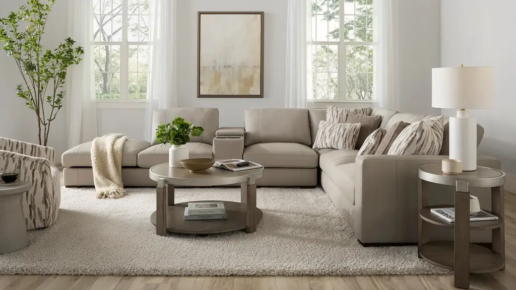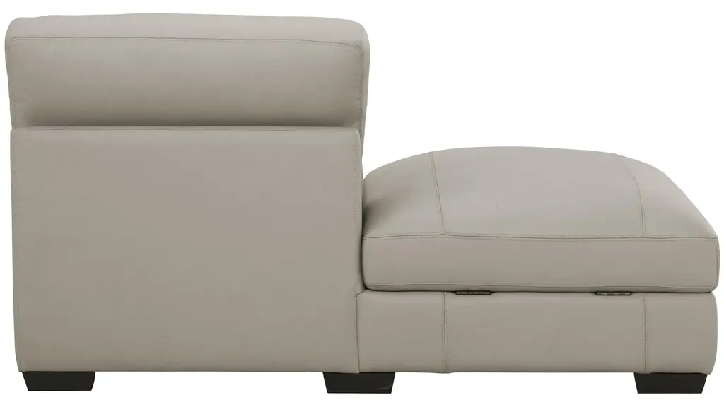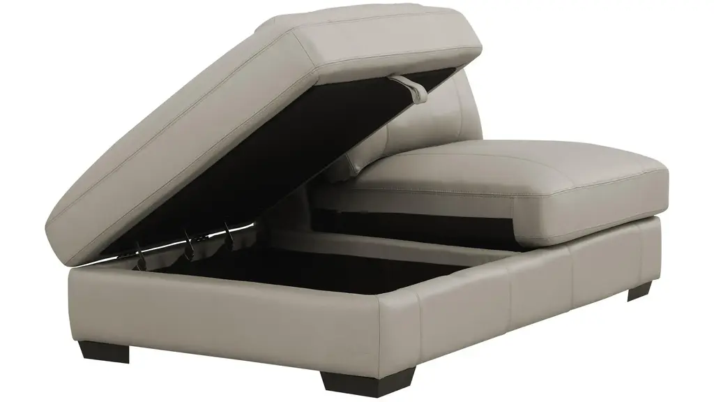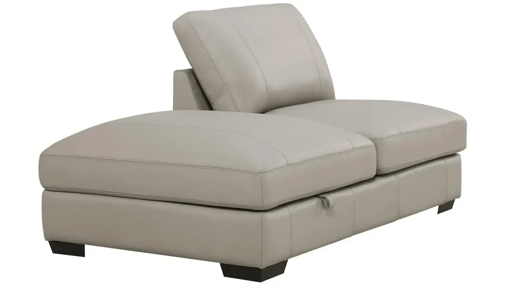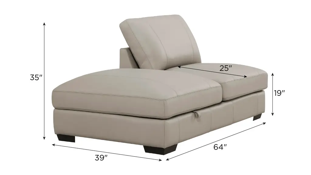 You're invited: Indulge in the contemporary elegance of the Oaklynn storage bumper chaise. Wrapped in beautiful and luxurious top-grain leather, it's just one fabulous component of the Oaklynn sectional. A masterpiece of comfort and craftsmanship, its oversized silhouette and generous seating area deliver a commanding presence, deep cushions invite you to sink in and unwind, and a convenient storage compartment makes it easy to keep the space tidy.