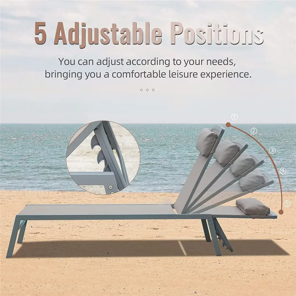 Enhance your outdoor living with this premium 3-piece patio lounge set featuring two adjustable Textilene chaise lounges and a matching side table. The rust-proof aluminum frames and breathable mesh fabric provide durable, all-weather comfort for poolside, garden, or beach use. With 5-position adjustability, removable headrest pillows, and convenient stacking capability, this set offers both functionality and style. The included side table with powder-coated steel construction provides the perfect spot for drinks and snacks, completing your ideal outdoor relaxation space.