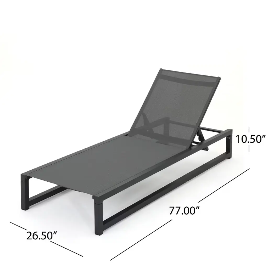 Okak Modern Gray Patio Lounge Chair Set With Soft Mesh,wooden Outdoor Chaise Lounge For Patio,beach,yard