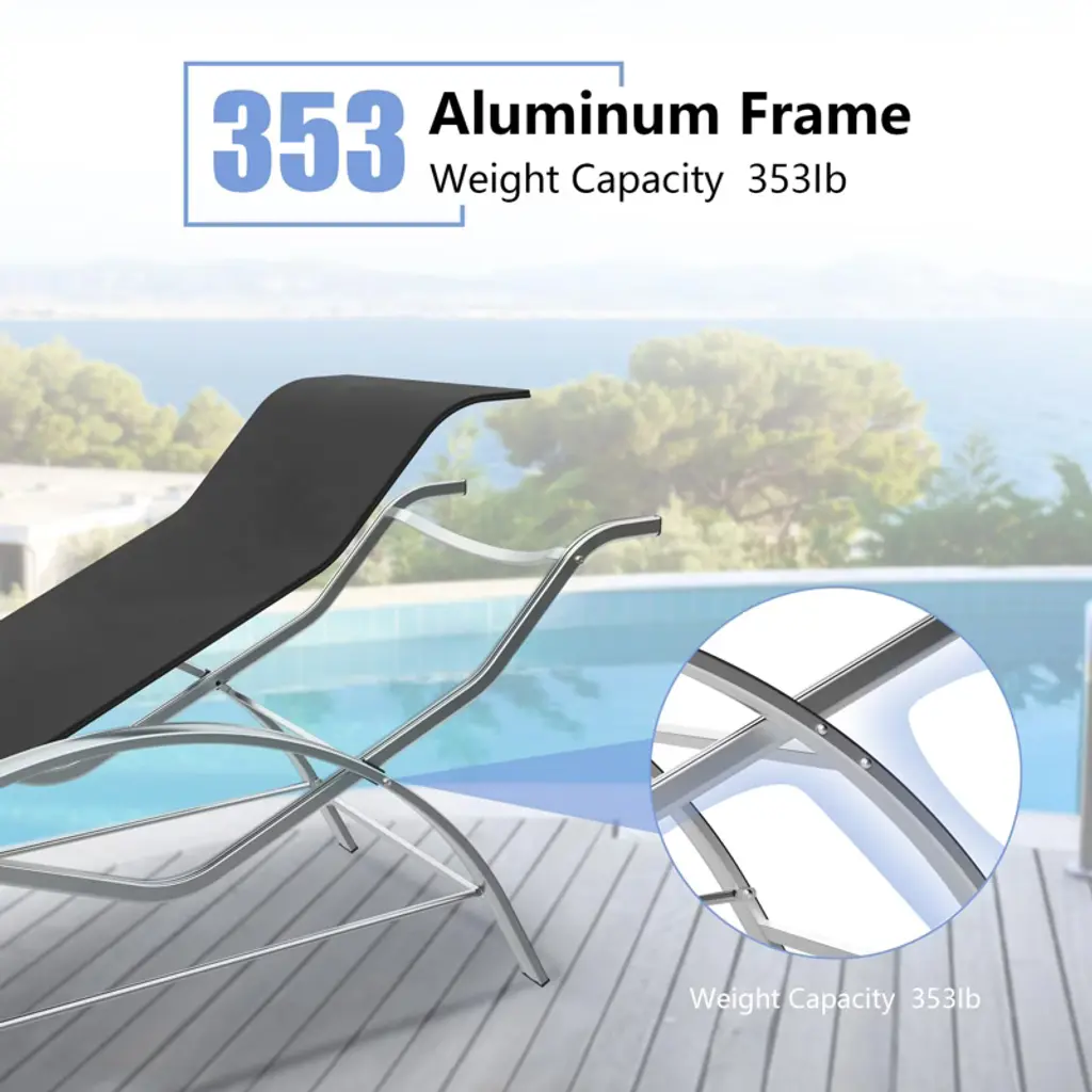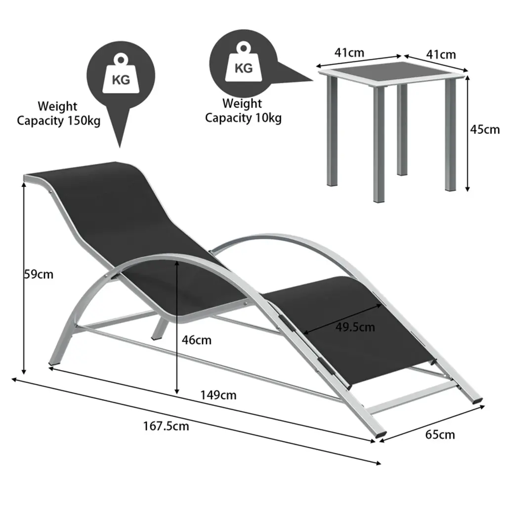Outdoor Chaise Lounge Chairs Set Of 3,aluminum Patio Chaise Lounge 2 Chair Set With Table, For Poolside, Garden, And Beach - Recliners