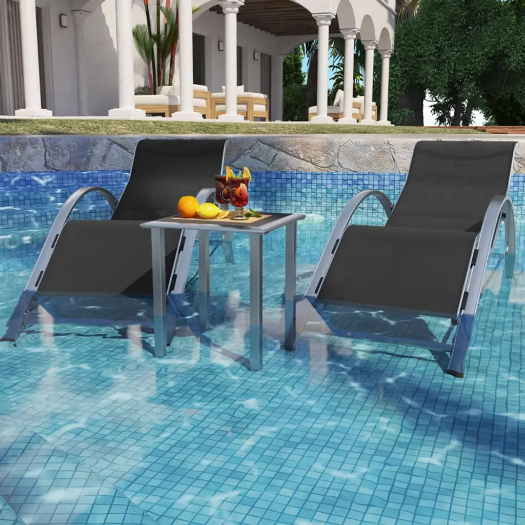 TROPOW Modern Outdoor Chaise Lounge Set - 3-Piece Aluminum Recliners with Textilene Fabric (Black)¡ï¡ï¡ï¡ï¡ï Weather-Resistant Poolside Lounge Set for Garden, Beach & Patio (353lb Capacity Each)1. INDUSTRIAL-GRADE ALUMINUM FRAME? Aircraft-grade aluminum construction? Rust-proof powder-coated finish? 353lb weight capacity per chair? Withstands saltwater, UV, and humidity? 10-year frame warranty2. LUXURY TEXTILENE COMFORT? Breathable quick-dry mesh fabric? 5-position adjustable reclining back? Ergonomically curved S-shape design? Water-repellent & fade-resistant? Easy-wipe maintenance3. SPACE-SAVING STACKABLE DESIGN¡ô Nests vertically for compact storage¡ô 23.23"W slim profile per chair¡ô Includes side table (2.62"L)¡ô Ideal for small patios/balconies¡ô 24.25lbs lightweight portability4. MODERN AESTHETIC APPEAL? Sleek black contemporary silhouette? Minimalist architectural lines? Complements all outdoor d¨¦cors? Poolside-to-beach versatility? Premium resort-style look5. TOOL-FREE ASSEMBLY? 15-minute setup per chair? Pre-drilled connection points? Illustrated step-by-step guide? All hardware included? Lifetime customer support?? TECHNICAL SPECS| Dimensions | 62"D ¡Á 23.23"W ¡Á 26"H (each) || Weight Capacity | 353 lbs per chair || Frame | Marine-Grade Aluminum || Fabric | Commercial Textilene Mesh || Set Weight | 24.25 lbs (per chair) |?? INCLUDED COMPONENTS¢Ù 3 aluminum chair frames¢Ú 3 Textilene fabric slings¢Û 1 side table¢Ü Mounting hardware kit¢Ý Weatherproof storage coverPERFECT FOR:¡ú Luxury poolside resorts¡ú Coastal beach houses¡ú Rooftop terraces¡ú Hotel gardens¡ú Spa relaxation areas"Where contemporary design meets unbreakable durability ¨C transform any space into a five-star retreat with these professional-grade loungers."