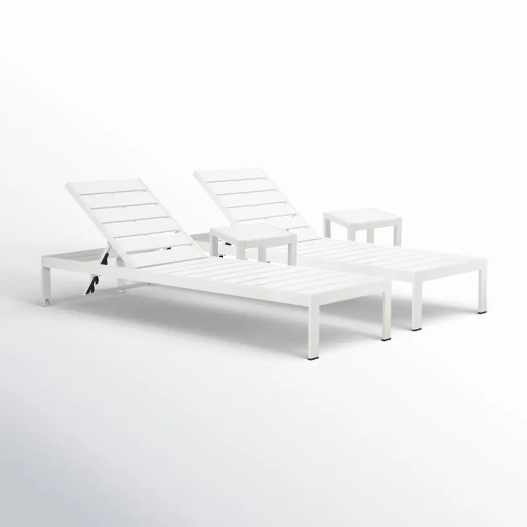 Enhance your outdoor lounging experience with this versatile chaise lounge set, designed for both comfort and durability. The adjustable backrest offers four reclining positions, allowing you to relax while reading, sunbathing, or napping. Constructed with a heavy-duty aluminum frame, it remains lightweight yet rust-resistant for long-lasting use. The breathable, rip-resistant fabric ensures a cool and comfortable feel, perfect for warm-weather relaxation. Easy to move and suitable for both indoor and outdoor spaces, this chaise lounge is ideal for poolside, backyard, or patio settings. This set includes two chaise lounges for double the comfort.