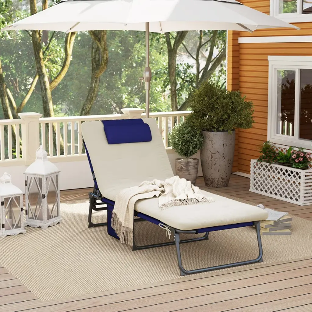 Outsunny Folding Chaise Lounge Pool Chair With 4-level Reclining Back, Outdoor Sun Tanning Chair With Cushion, Side Pocket, Headrest, Navy Blue