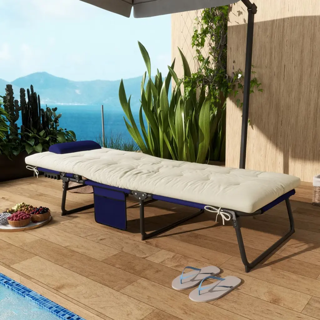 Wish you could pack up the comfort of the resort and bring it on the road? You're a step closer. Outsunny has a foldable sun chair so you can lay back at the beach, camp, or the pool. It features a reclining backrest with 4 positions, letting you sit, lie, or recline. A pillow pads your head, and a large cushion makes the entire surface plush and soft. What's more comfortable than peace of mind? A pocket on the side ensures your important belongings have a place so you can nap in peace.