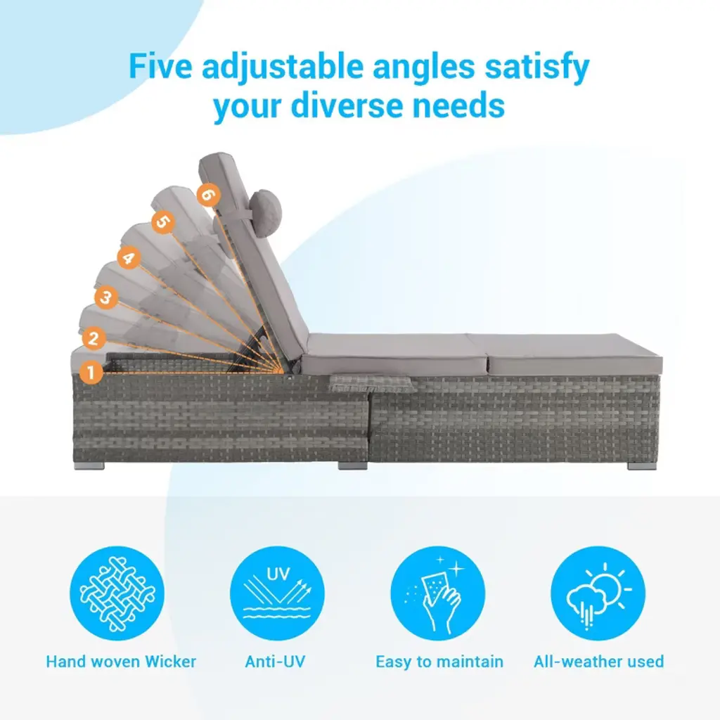 Paged 2-piece Pe Rattan Patio Chaise Lounge With 5 Adjustable Angles,outdoor Lounge Chairs For Poolside,backyard,gray