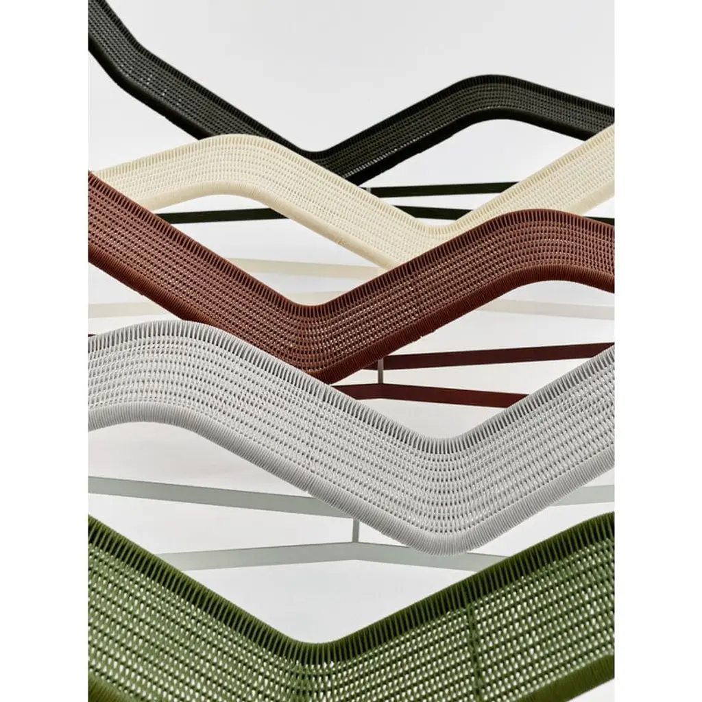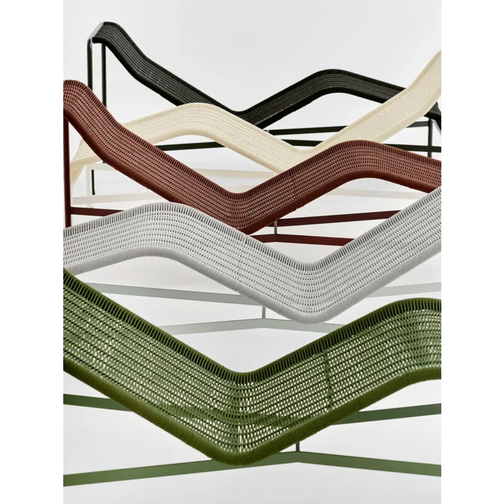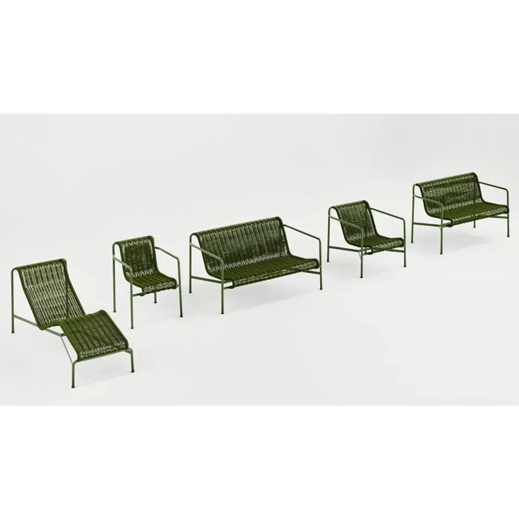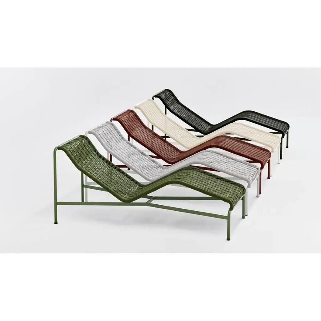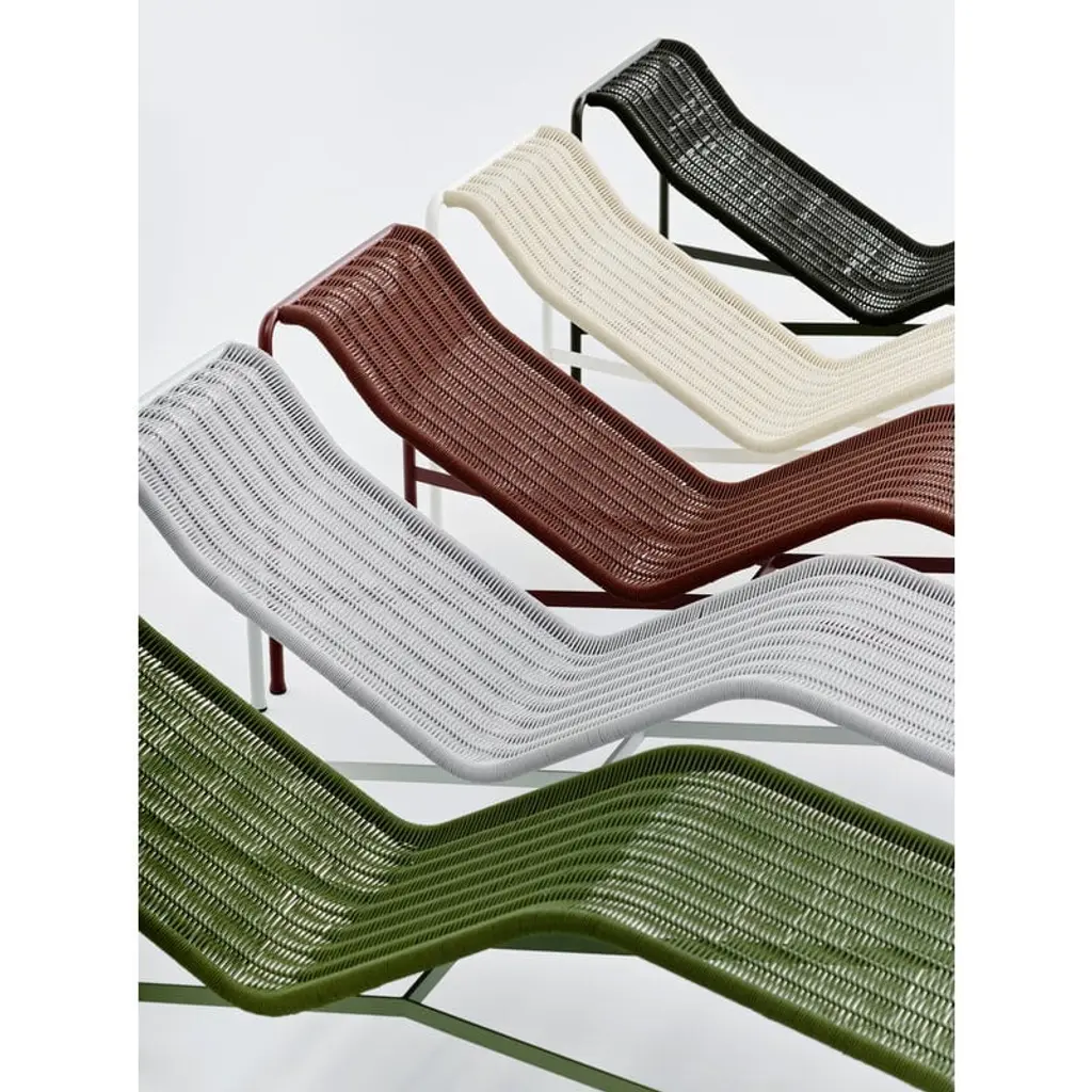 The Palissade Cord chaise longue updates the look of HAY's beloved Palissade range. The stylish chair still features the same familiar curved frame, but instead of the usual steel, the Palissade Cord sun lounger's seat is made from recycled polyester cord, adding a summery lightness to the chair's otherwise robust appearance. Ronan & Erwan Bouroullec spent no less than two years refining the Palissade range and it paid off! The result is a sturdy yet extremely elegant collection of outdoor furniture with a graphic look that is suitable for terraces, balconies, gardens and public spaces alike. The Palissade collection is designed to stand the test of time and weather, and its components make it easy to put together a functional outdoor furniture set for the home or summerhouse.