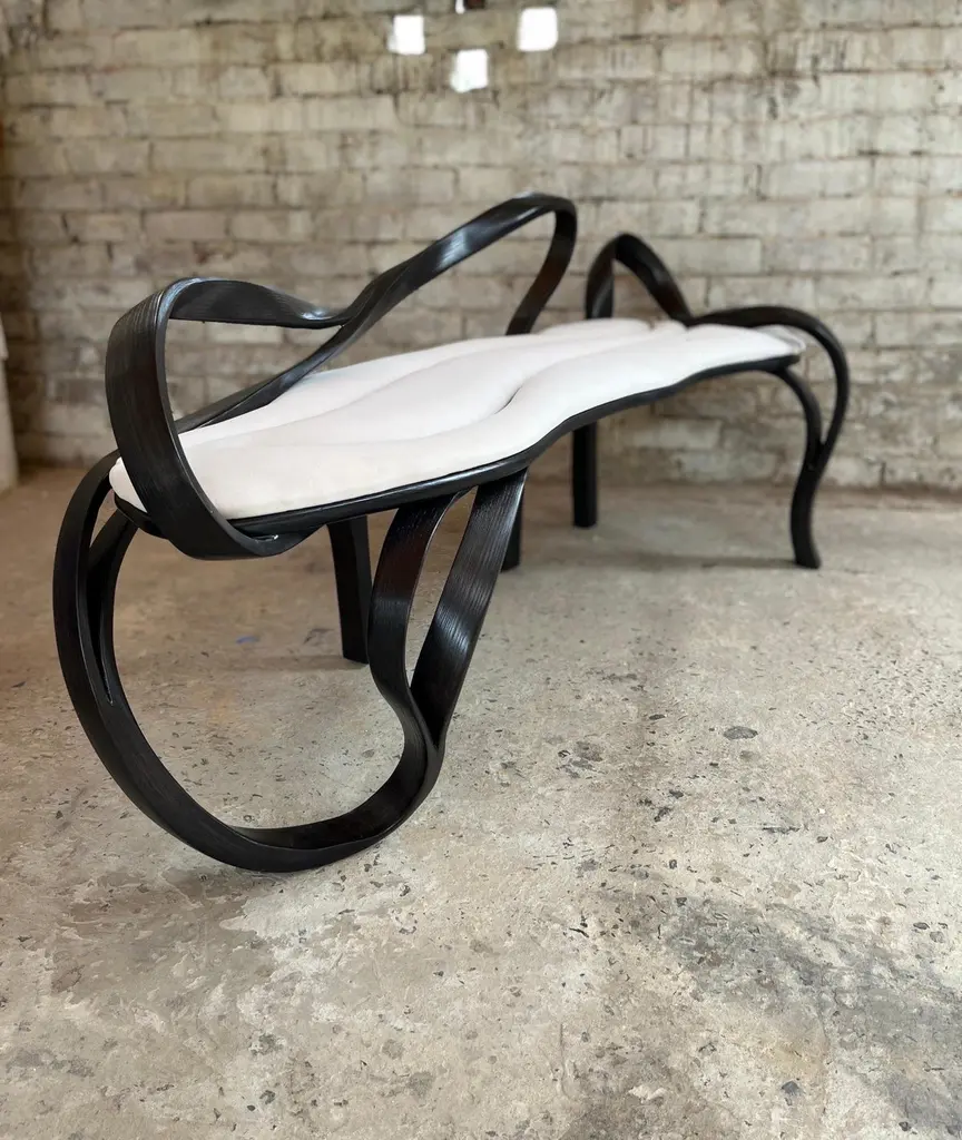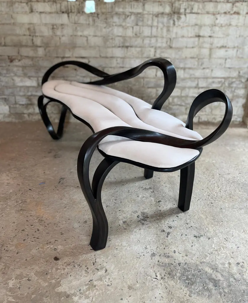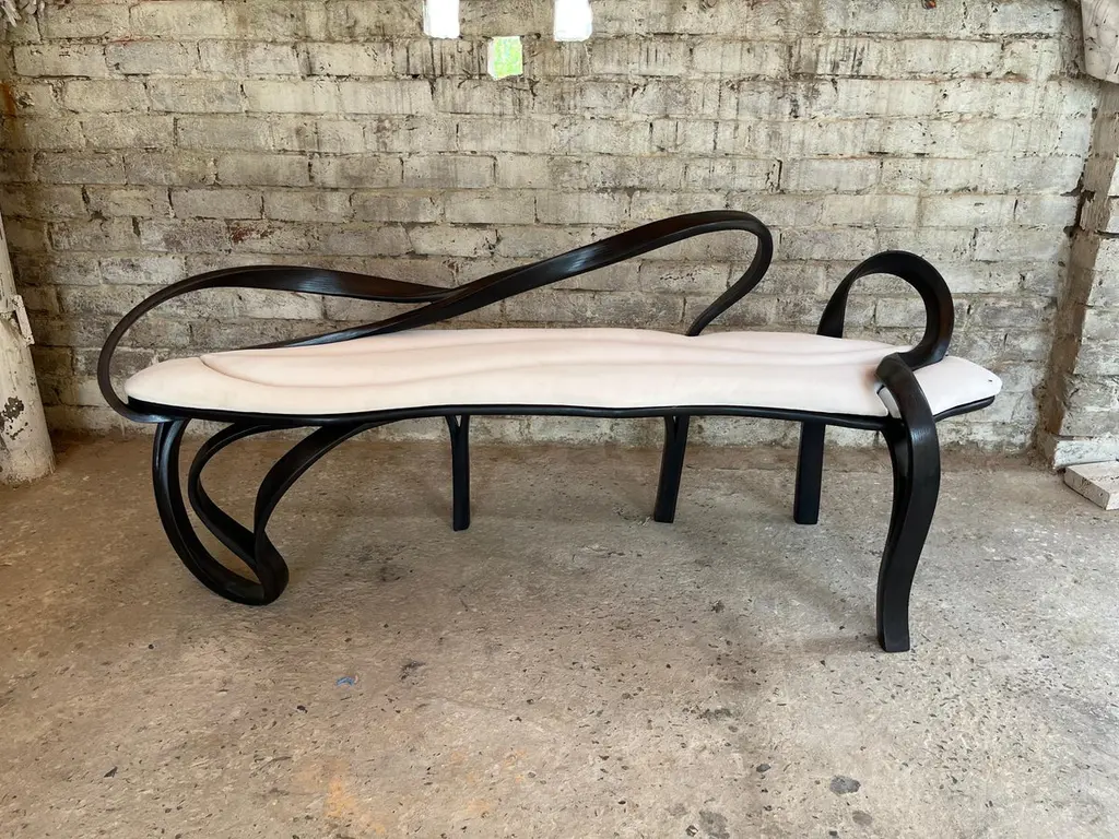 ABOUTPalito - A lounge chassis designed and crafted by Raka Studio, is a part of the new collection, in which the studio has integrated a plain wooden surface. In this case, the plain surface is the seating area, which has been surrounded by an organic design, made from the same material but with a totally different technique thus achieving and displaying the versatility of the studio's primary material of expression; Wood.The sculptural object is fully functional and comes with a soft velvet cushion covering the seating area. The colour of the wood and velvet are customizable.Raka Studio.