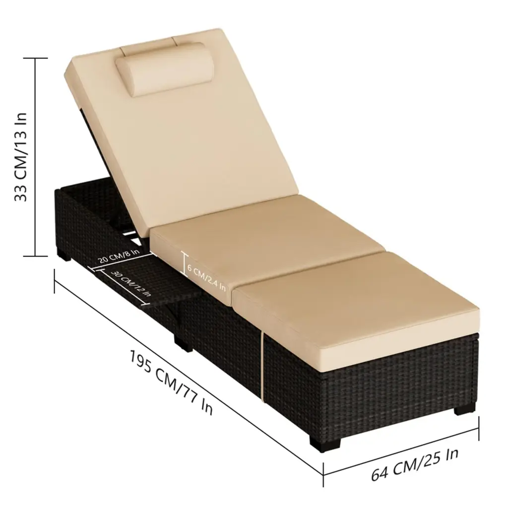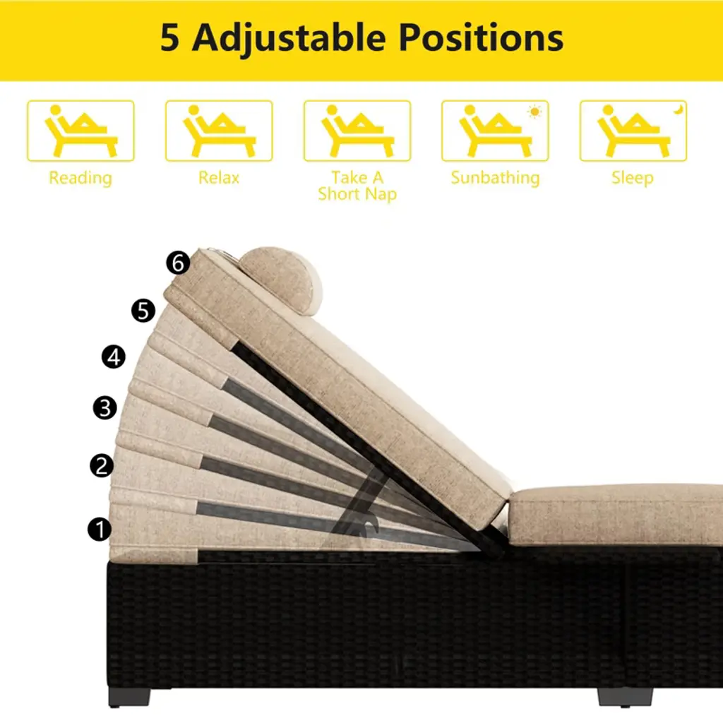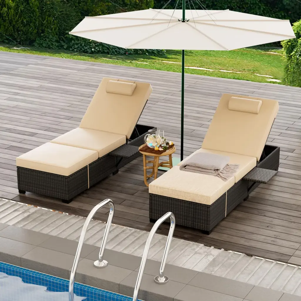 Patio Chaise Lounge Chair, 5-positions Adjustable Wicker Outdoor Lounge Chairs With Side Table For Poolside, Deck, Set Of 2