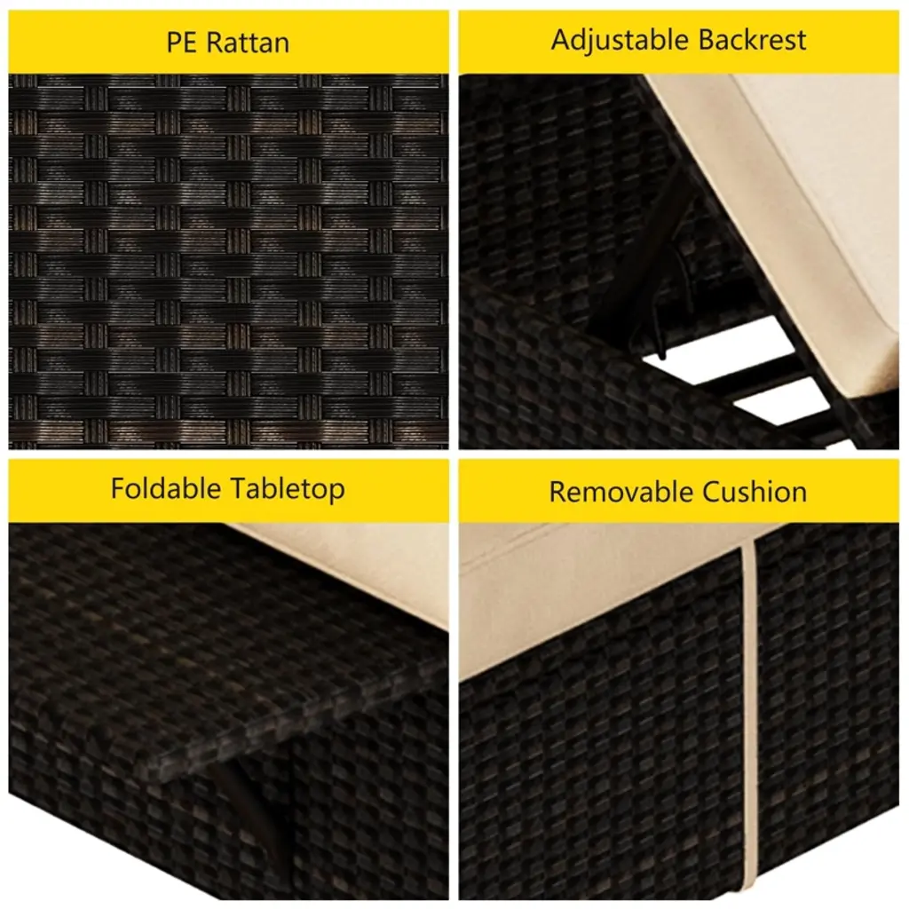 Patio Chaise Lounge Chair, 5-Positions Adjustable Wicker Outdoor Lounge Chairs with Side Table for Poolside, Deck, Set of 2