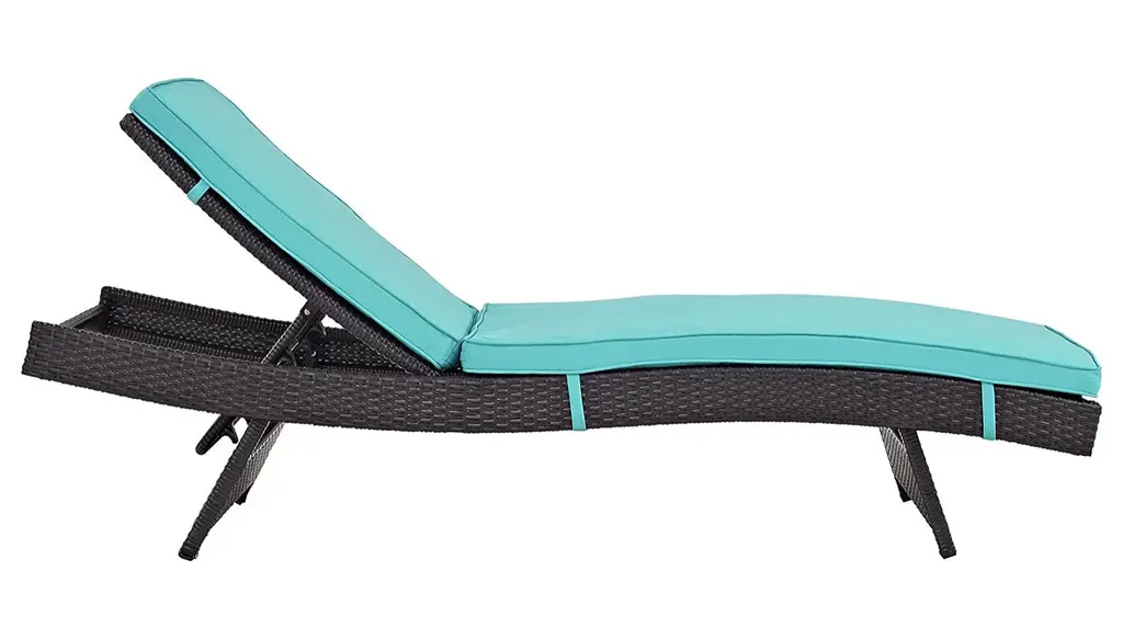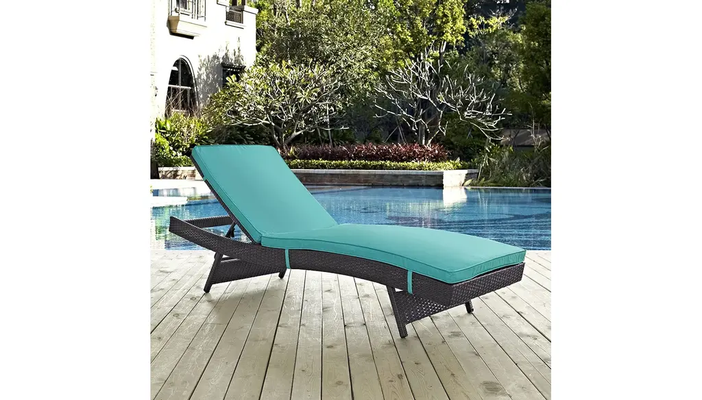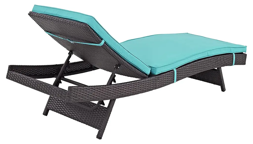 Espresso Wicker Patio Chaise Lounge With Adjustable Back And Padded Cushion, Turquoise
