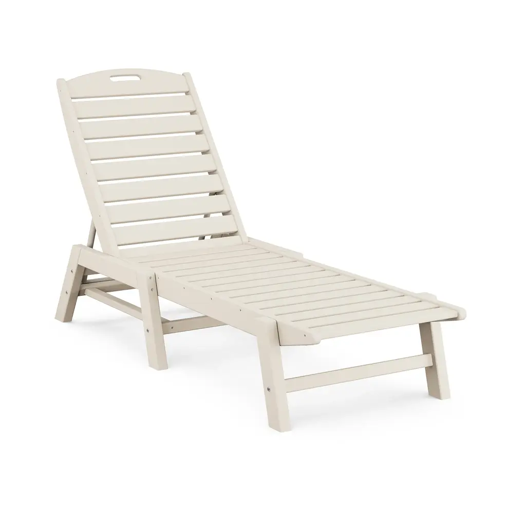 Lay back and relax in our durable high end outdoor Nautical Chaise Lounge. Add an optional all-weather fabric Sunbrella cushion. Made in America of recycled plastic containers, it's comfy and won't fade or discolor. Part of our POLYWOOD® Nautical Outdoor Furniture Collection, it's perfect for beach, porch, patio, poolside & deck. Eco friendly recycled plastic lumber fastened with premium stainless steel hardware makes our Nautical Collection the highest quality outdoor pool and patio furniture available. It may just be the last outdoor chair you have to buy! Our POLYWOOD® is ultra-durable, weather-resistant and affordable outdoor patio furniture. No need to store this chaise lounge during winter months - leave it outside!