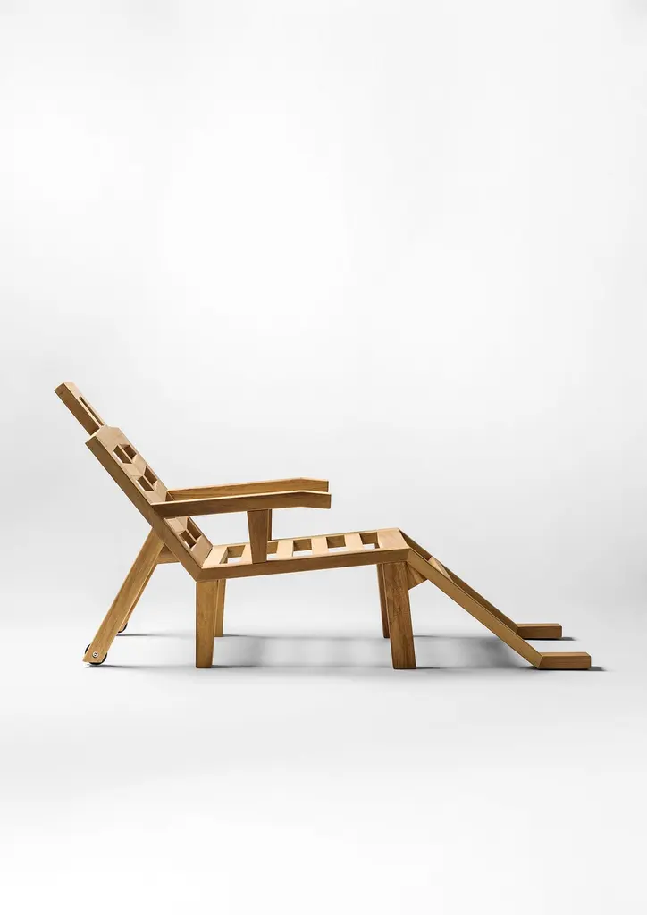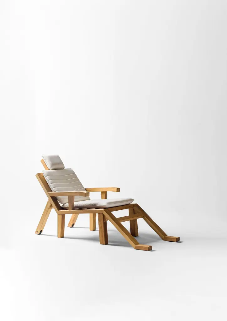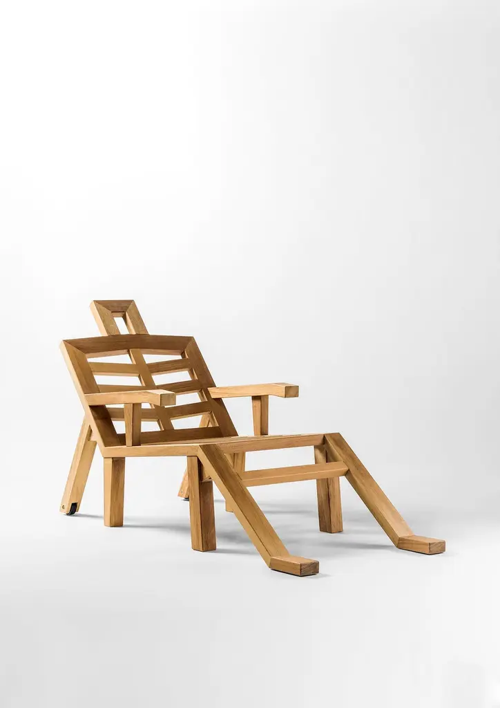 Portlligat sunbed designed by Salvador Dalí for BD Barcelona is part of the 2019 collection. Dalí was an incredible designer, well known for the striking and fantastic images in his surrealist work. Dalí was highly inventive, and also enjoyed reveling in modern and grand behavior. Solid Iroko wooden structure with polyamide wheels. Optional upholstered cushion with water repellent foam and material Apt for outdoor use. The cover is removable.