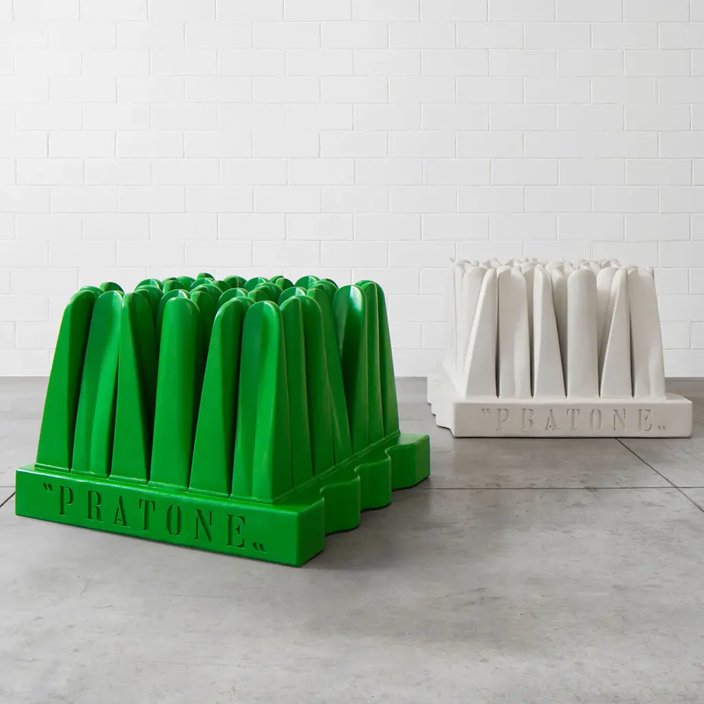 PRATONE® FOREVER is the spin-off of its famous predecessor, born to celebrate the 50th anniversary of this timeless icon, a myth that reinvents itself and on the other play on the fact that, over the years, that green has never been identical to itself. More restrained in its dimensions PRATONE® FOREVER remains faithful to the Radical spirit that distinguishes its aesthetic.