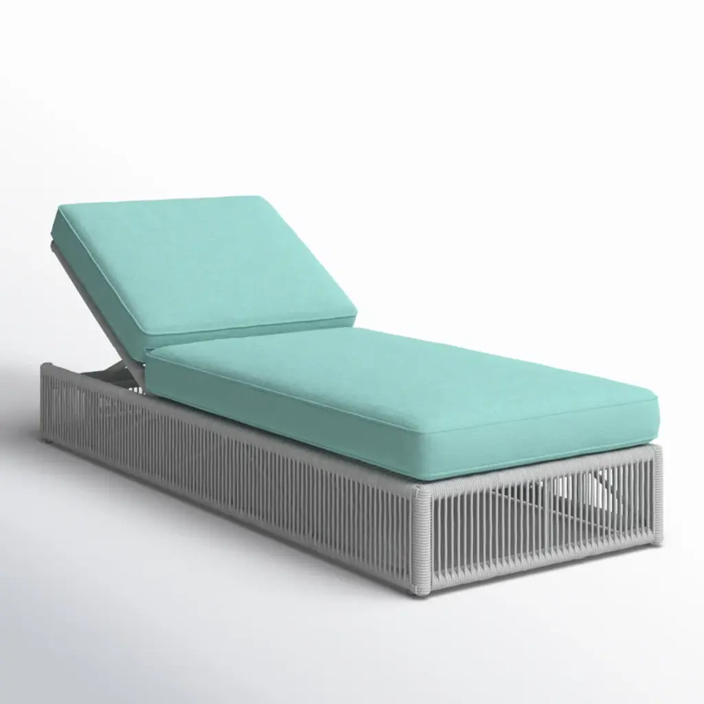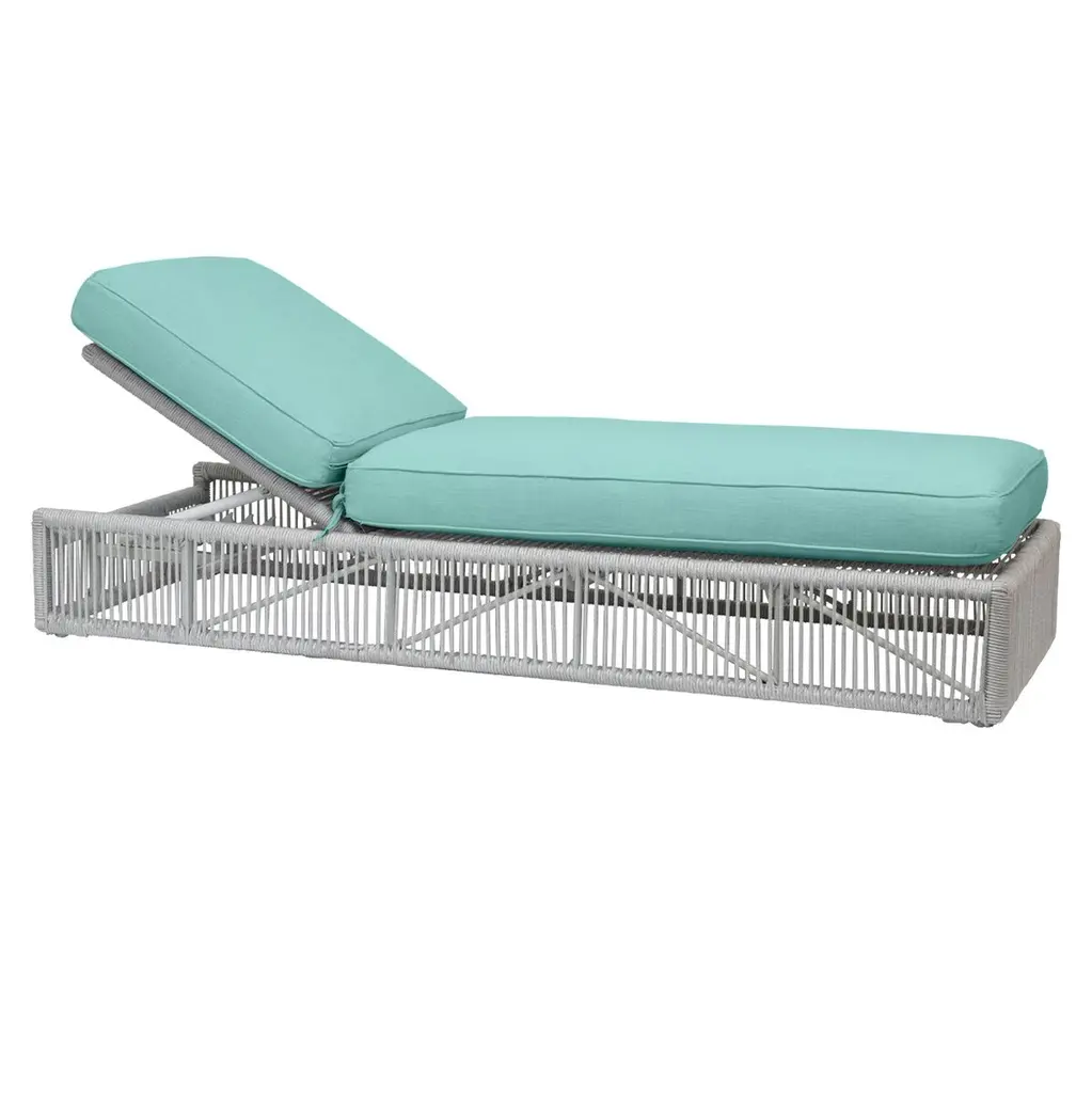 Shine a little sunny style on your terrace with this clean-lined chaise lounge. It's crafted with a rust-resistant aluminum frame and wound in textured gray rope. It features a light and airy monochrome palette that feels so current. This patio chaise lounge reclines for a resort-worthy touch in your outdoor oasis. Plus, the seat and back are topped with Sunbrella performance fabric cushions that resist fading and staining to stay looking crisp. So worth it: This sun lounger arrives fully assembled, so you can get right to relaxing.