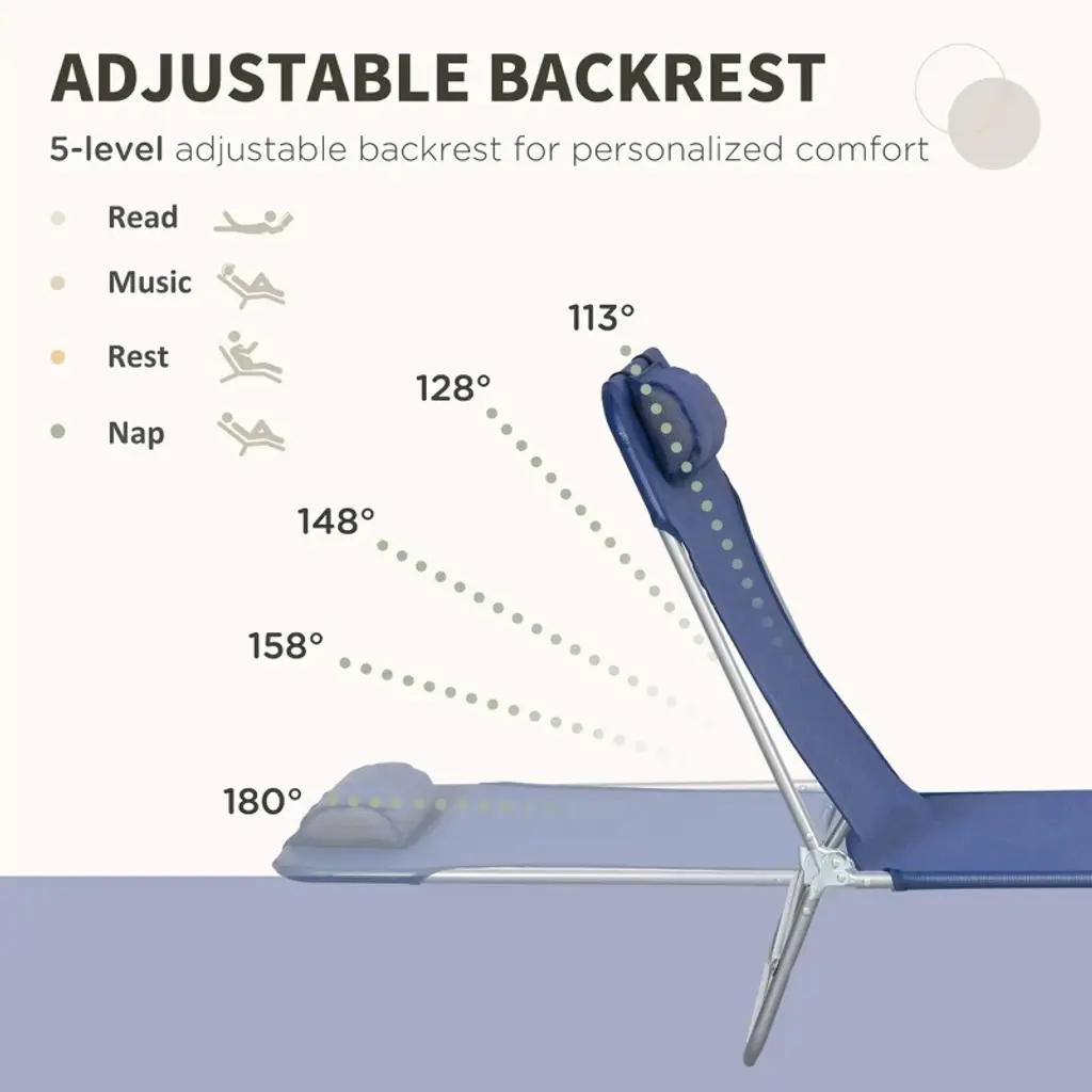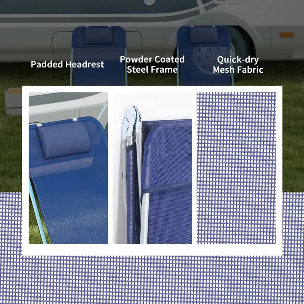 Resenkos 2-piece Foldable Premium Chaise Lounge Chairs , Reclining Sunbeds With Breathable Mesh Seating, Headrests, Dark Blue