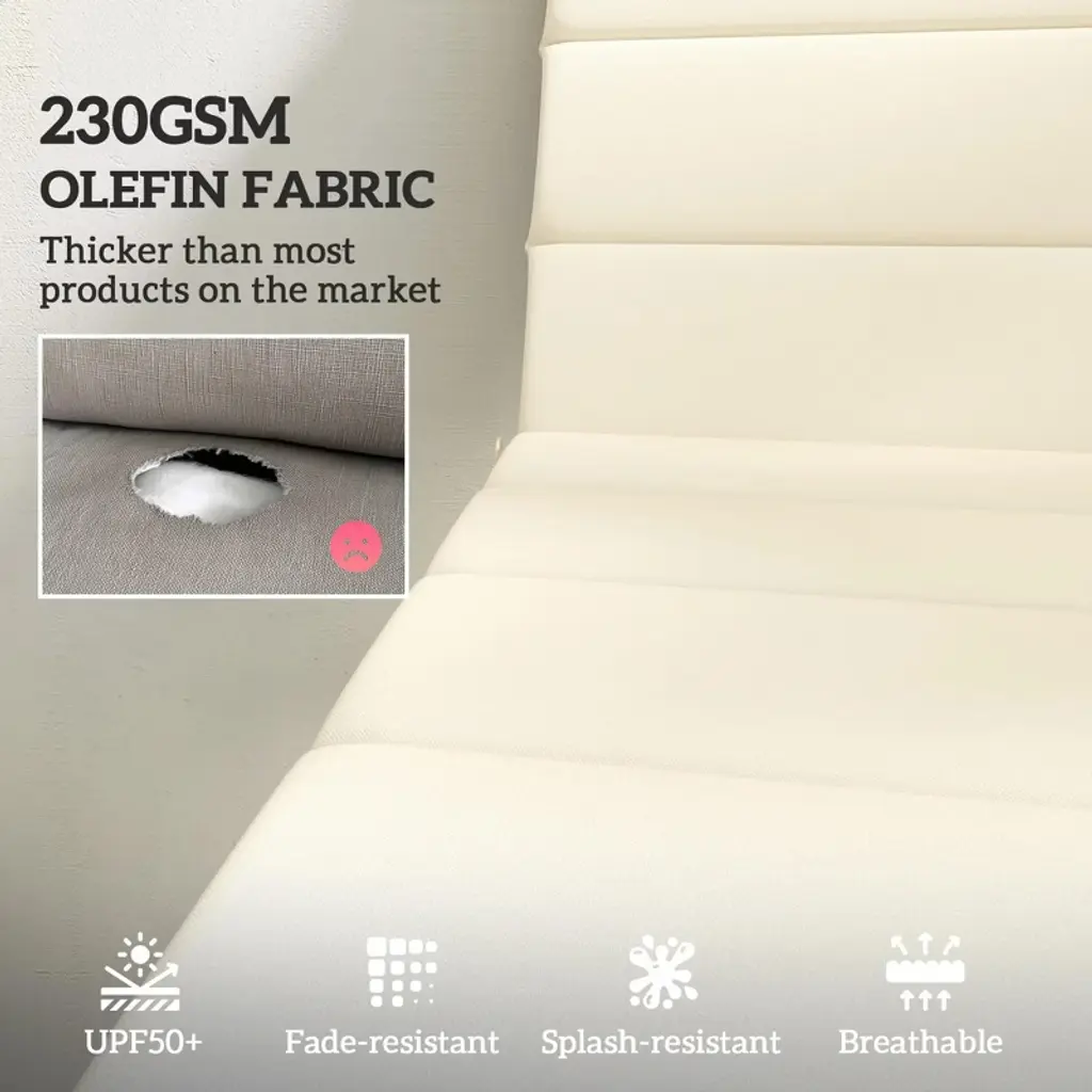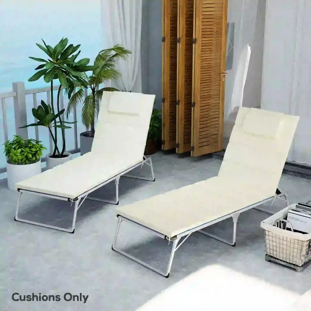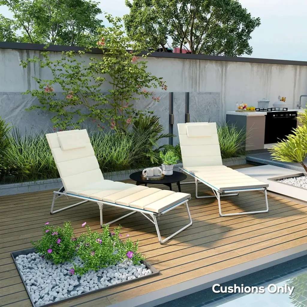 Resenkos Foldable Chaise Lounge Cushion Set 2-pack, Upf 50+ Sun Protection, 230gsm Olefin Fabric, Outdoor Lounge Chair Cushions, Cream White