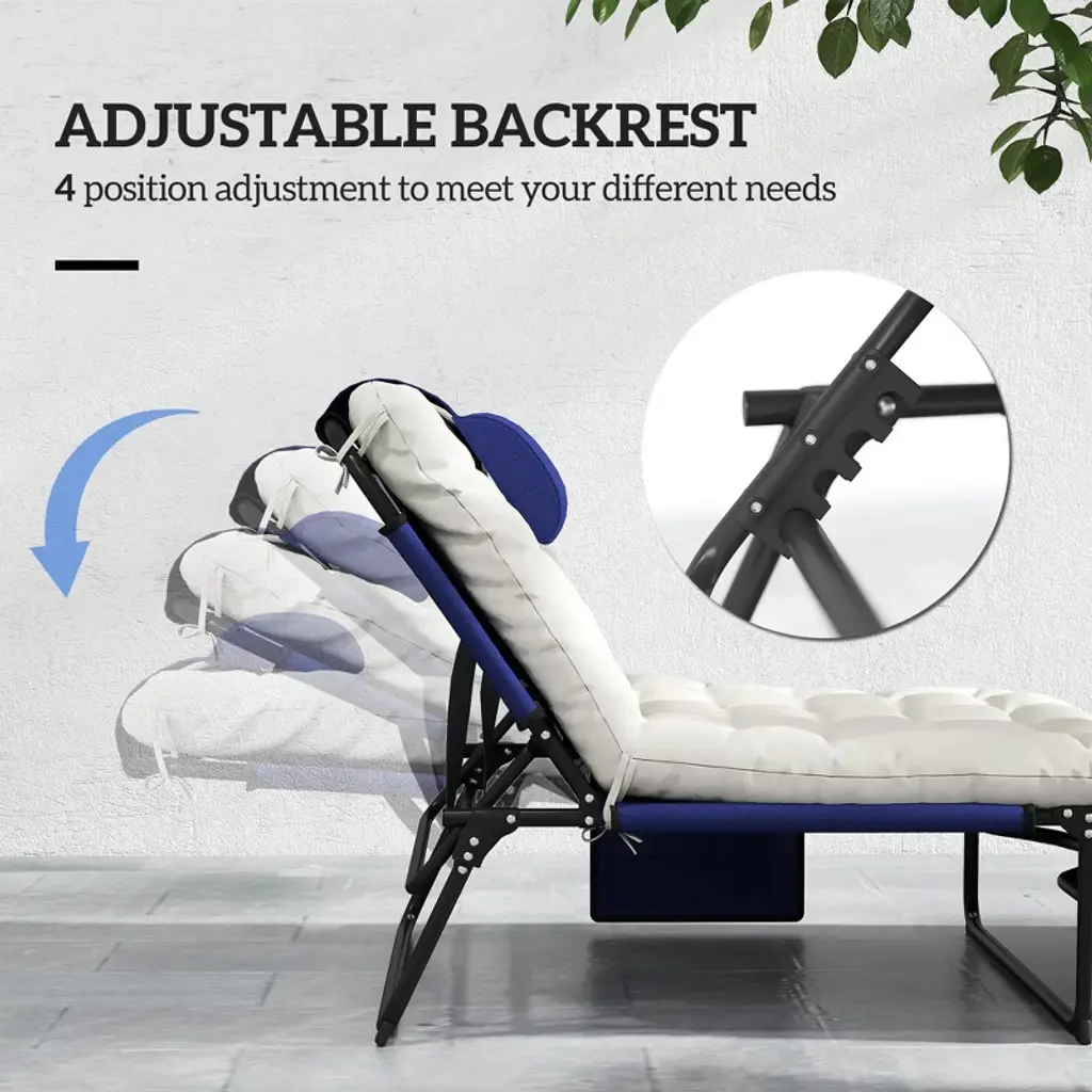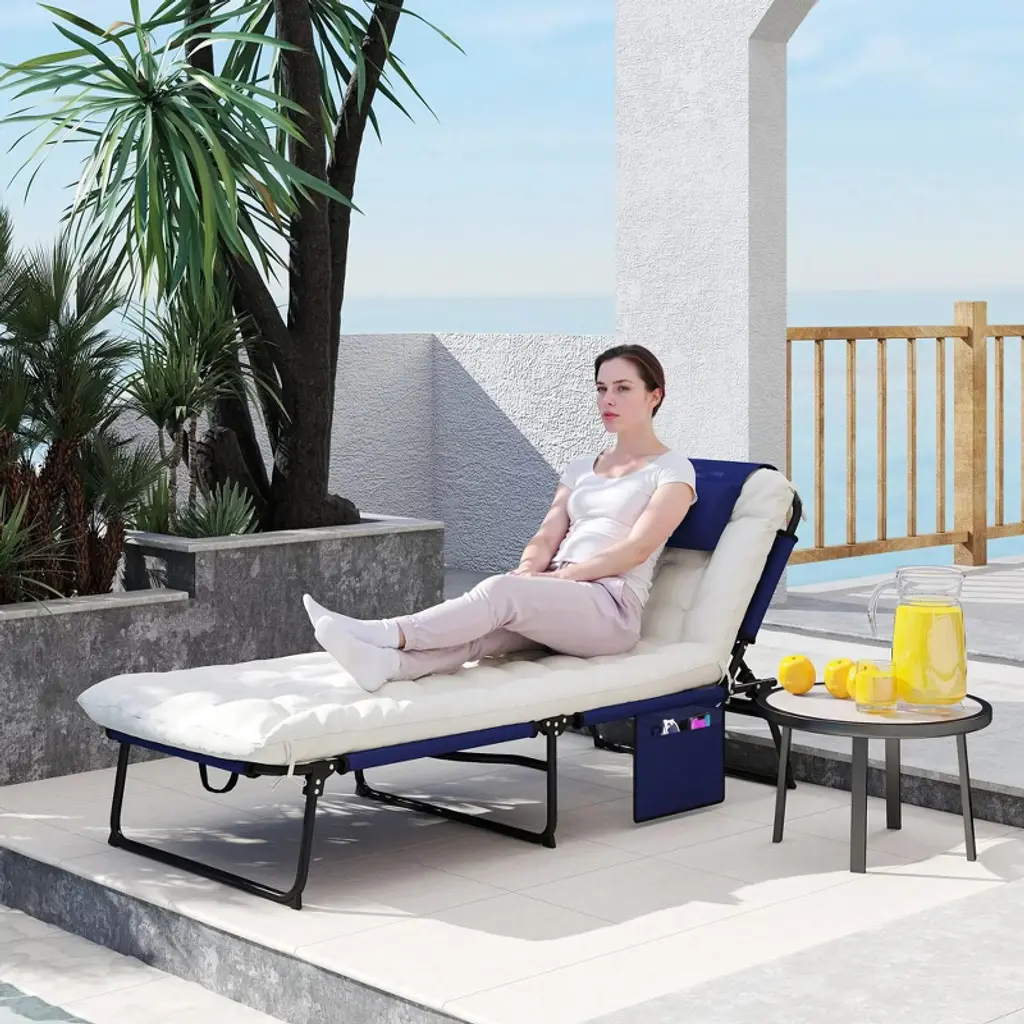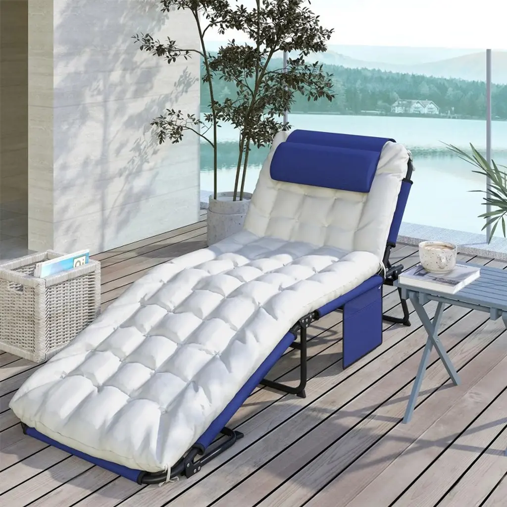 Resenkos Folding Chaise Lounge Pool Chair With 4-level Reclining Back, Cushion, Side Pocket, Headrest, Blue