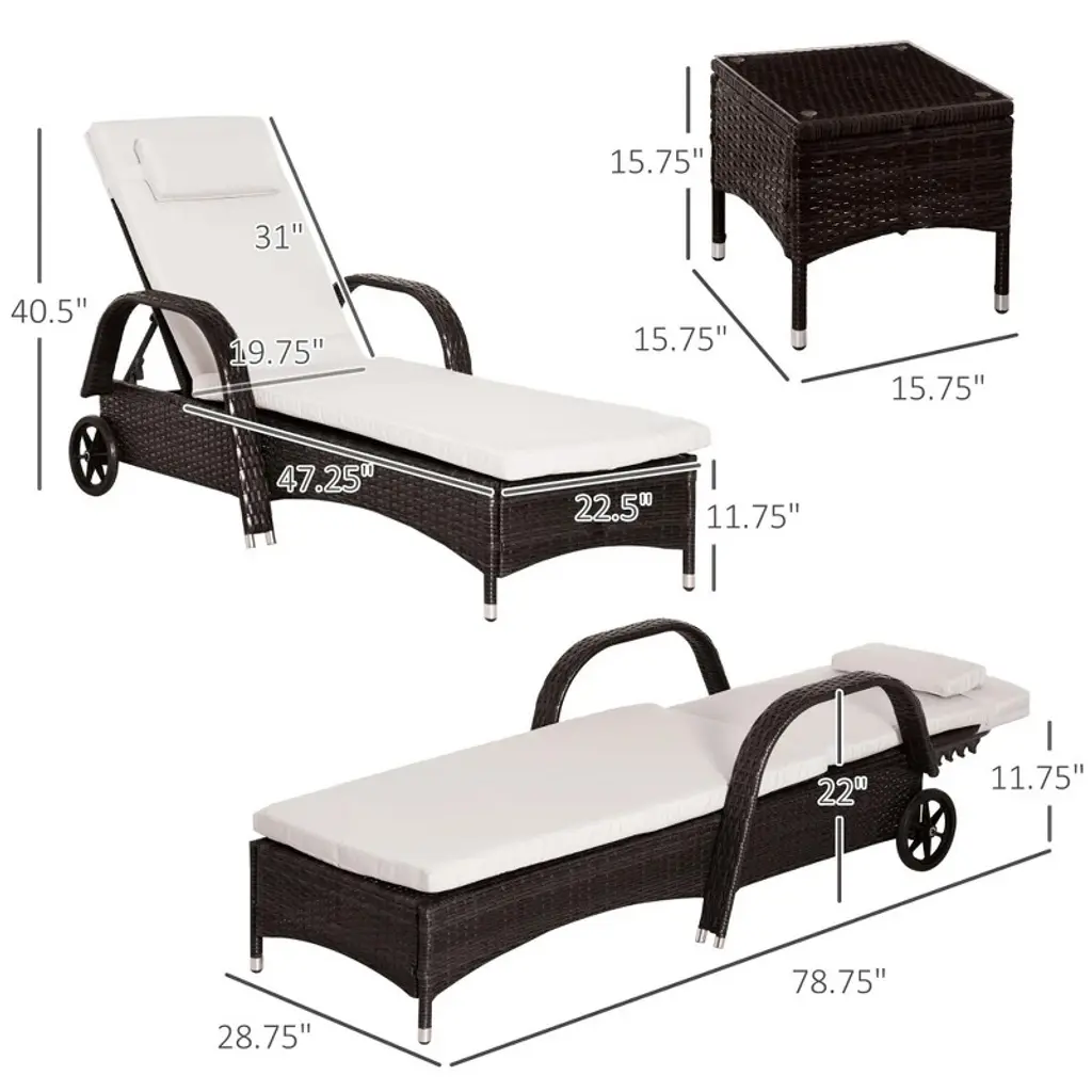 **Resenkos Patio Lounger Set: The Ultimate Relaxation Experience at Your Backyard Oasis - Exclusive**Imagine soaking up the sun, drifting into a refreshing nap, or simply enjoying a drink with friends in your own patio's comfort. With the Resenkos Patio Lounger Set, your dream of a luxurious outdoor living space becomes a reality. This set is a must-have for any outdoor furniture collection, offering a blend of comfort and tropical charm.This set is designed for ultimate poolside comfort, featuring lounge chairs with wheels for effortless transportation. The adjustable backrest allows you to select from five different angles, including a flat position for napping. The handwoven design is not only water-resistant but also adds a touch of tropical charm to your outdoor space. The lounge chairs and table are crafted with heavy-duty steel frames to support a significant weight capacity without bending or breaking.The included cushions are soft, thick, and fully cushioned, providing all-day comfort. The outdoor table features a glass top for easy cleaning and provides space for your drinks, phone, or suntan lotion. The set comes in a seamless blend of brown and cream white colors, effortlessly complementing any outdoor decor.Key product features include poolside comfort, adjustable backrest angles, ease of movement, tropical charm, drink space, durable construction, cushioned comfort, and an easy-to-follow assembly manual. With this comprehensive set, you can create the perfect outdoor space for relaxation, sunbathing, or simply enjoying quality time with family and friends.The specifications of this set include dimensions for both the lounge chairs and the side table, as well as weight capacities to ensure its durability and stability. Don't miss out on this must-have patio furniture set at ! Order yours today and experience the ultimate in outdoor relaxation with the Resenkos Patio Lounger Set.Resenkos Lounger Chairs, Patio Furniture Set, Outdoor Lifestyle, Comfortable Cushions, Ease of Movement, Tropical Charm Design, Heavy-Duty Steel Frames, Glass Top Table, Exclusive Offer.