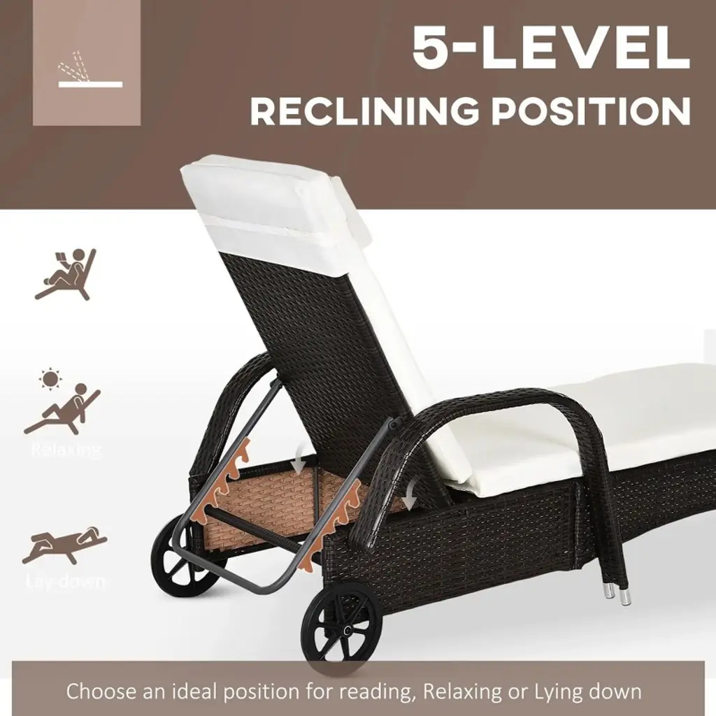 Resenkos Wicker Outdoor Chaise Lounge Chair Set, 5-level Adjustable Backrest Pe Rattan Pool Lounge Chair With Wheels, Cushion & Headrest, Brown, Cream