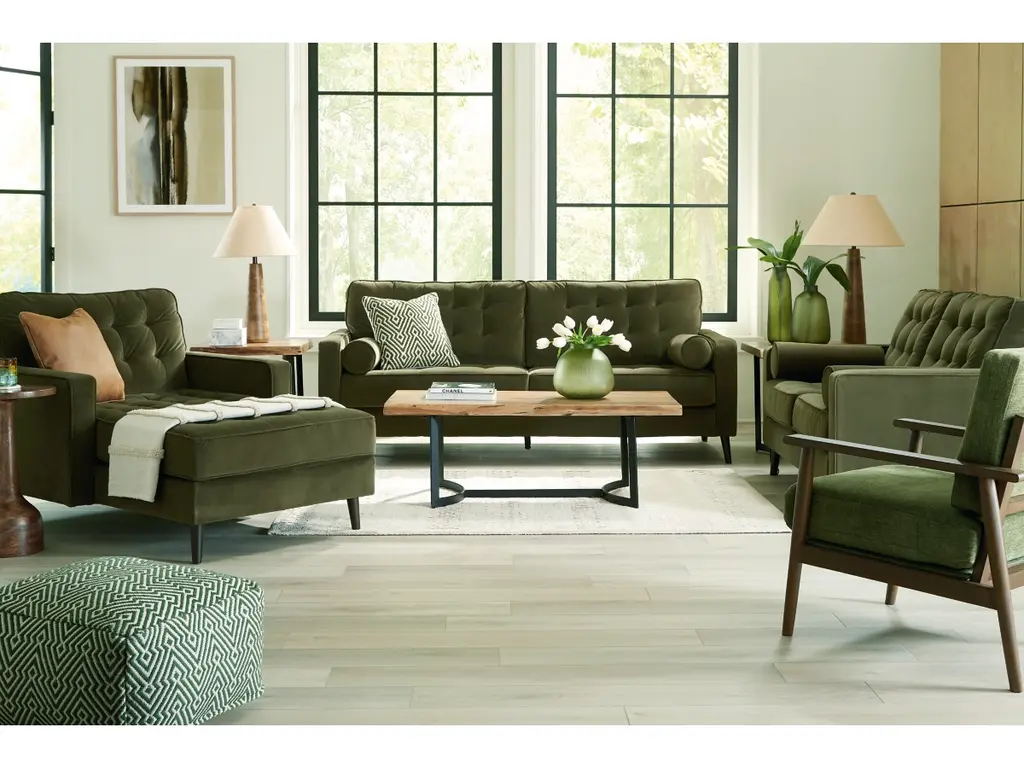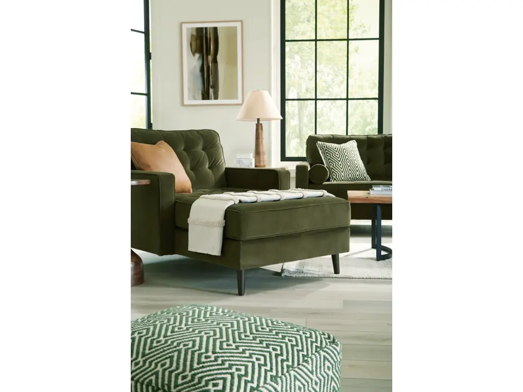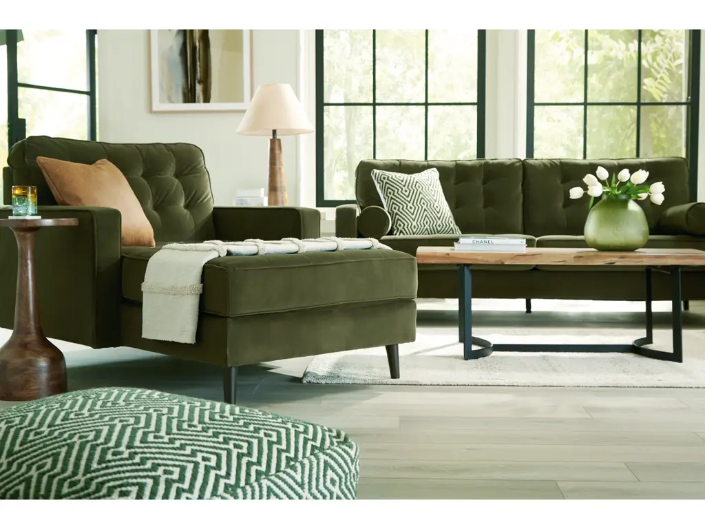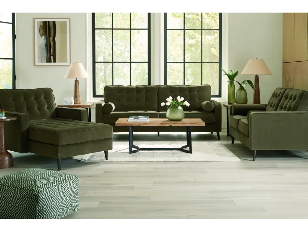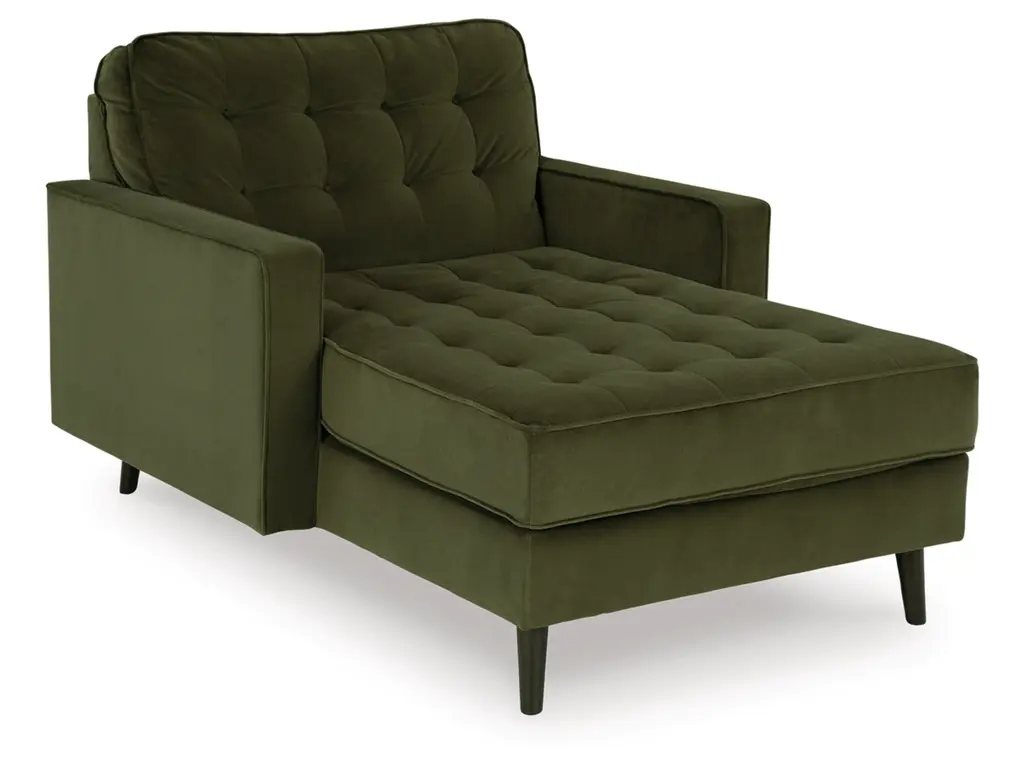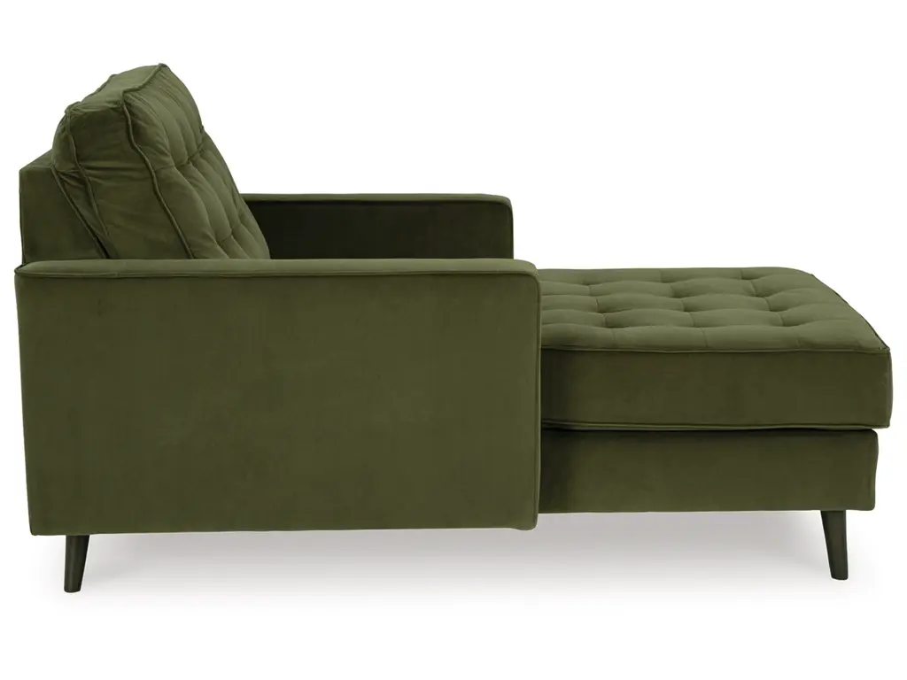 The Reveon Lakes chaise strikes the perfect balance between elevated and eclectic. Contemporary lines and a richly hued velvet upholstery keep things chic. Design details like button tufting and splay legs add mod flair. It’s sure to keep your living room luxuriously on trend—at a price that won’t break the bank.