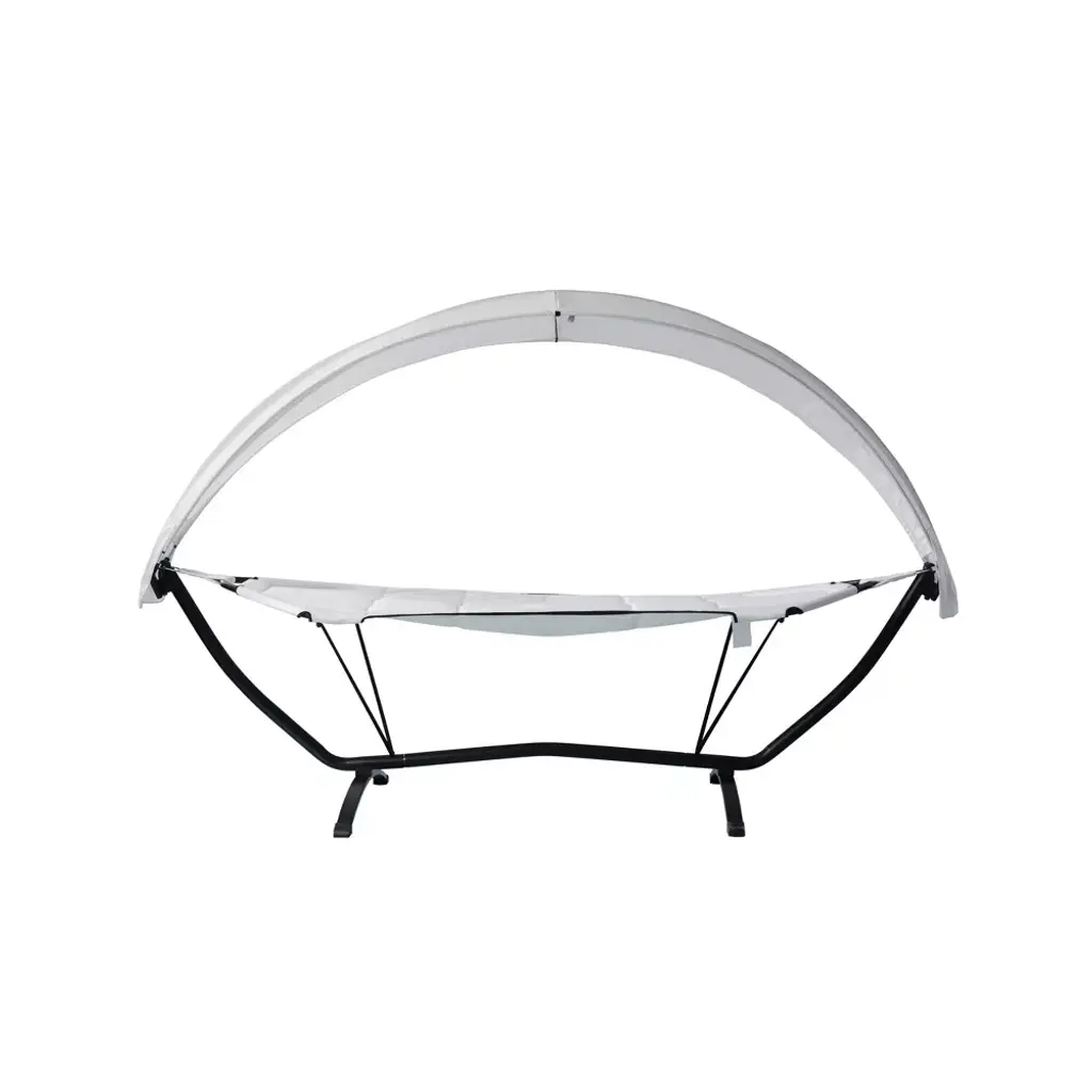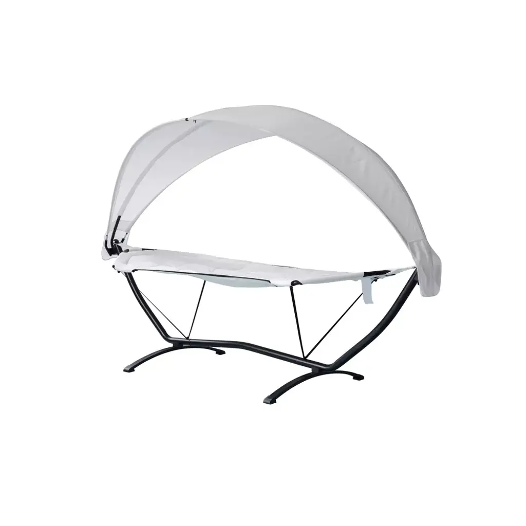 Relax the day away in this beautiful Sea Breeze Luxury Shaded Lounger. Made with high-quality polyester fabric, this hammock is designed to make lounging a breeze in any outdoor area. The free-standing hammock stand is made from heavy-duty powder-coated steel to withstand the elements. Also includes a retractable, easily removeable oxford canopy so you can enjoy the outdoors in both the shade or sun. To improve longevity, store in an enclosed space when not in use. Set includes hammock, canopy, frame, and assembly hardware.