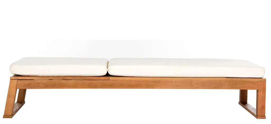 The cosmopolitan lifestyle of Ibiza's jetsetters was the inspiration for this modern sun lounger. Crafted with natural wood and fitted with a lush cushion, its relaxed, luxurious style creates an instant oasis in any outdoor living space.