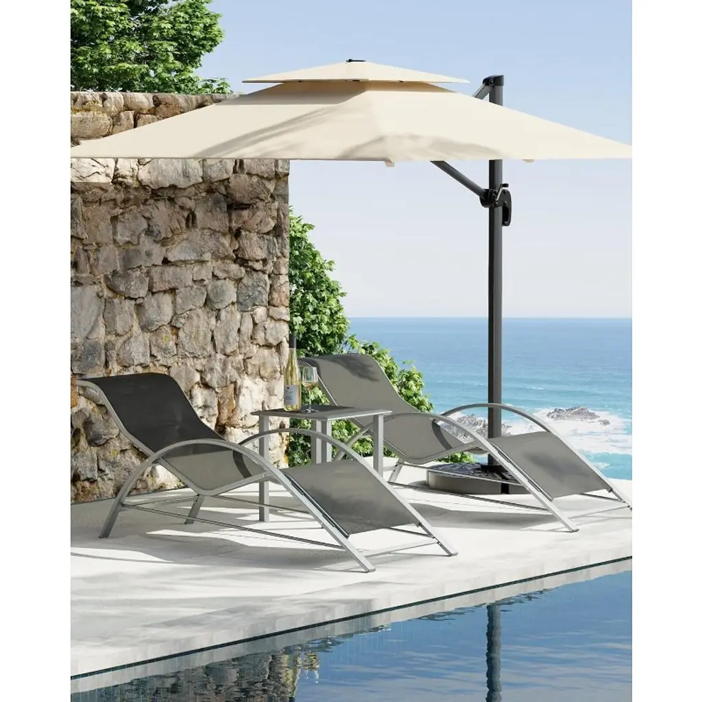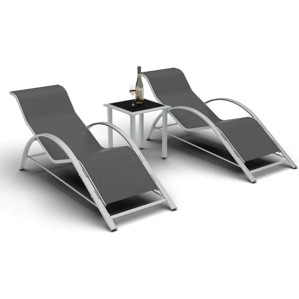 Set Of 2 Outdoor Patio Chaise Lounge, 3 Pieces Pool Lounge Chairs With Arm & Side Table, Beach Sunbathing Lawn Chairs For Outside, Gray