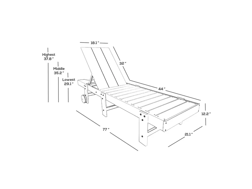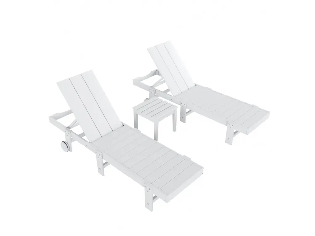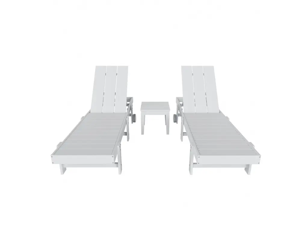 Shoreside Reclining Chaise Lounges With Wheels And Side Table (Set Of 3)
