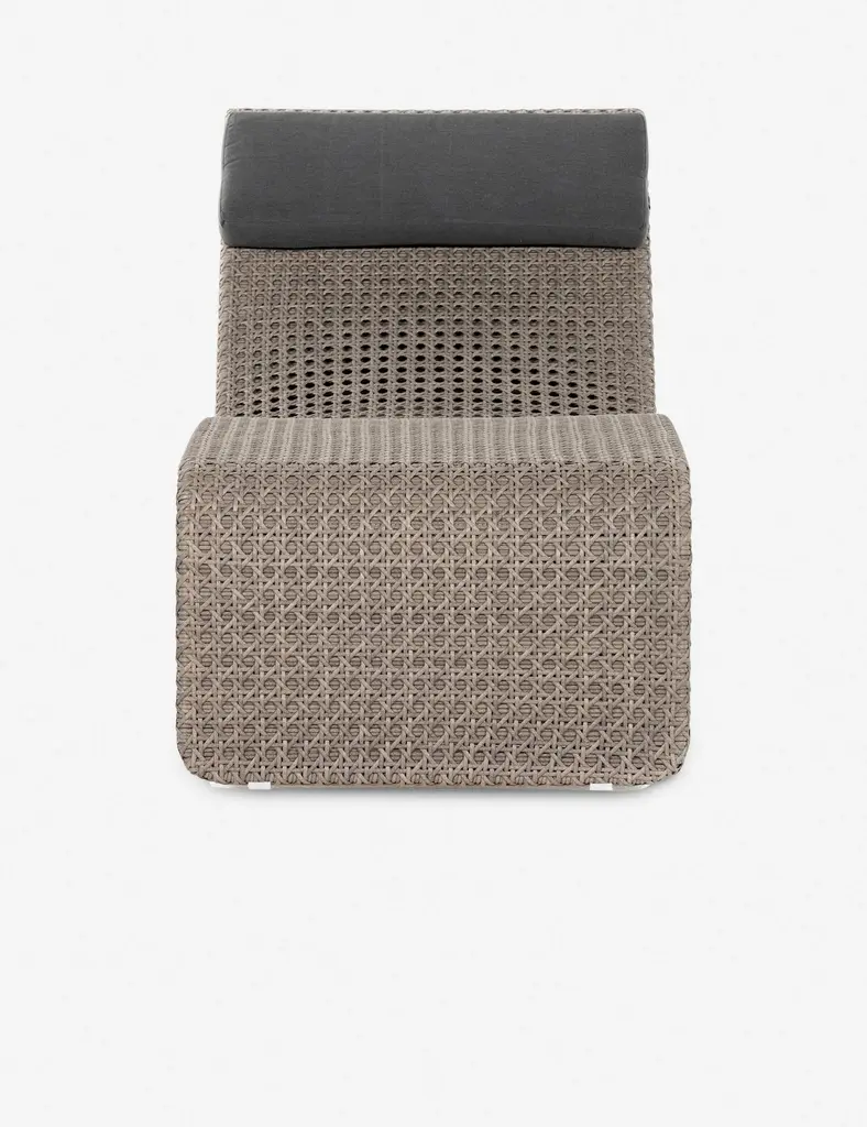 The curved lines of this chaise lounge set off a sculptural silhouette. Woven from all-weather wicker, this distinctive reclining chair offers endless textural appeal and an elevated tone for laid-back style. A detachable pillow completes the look.